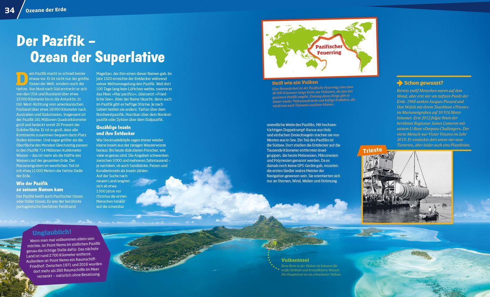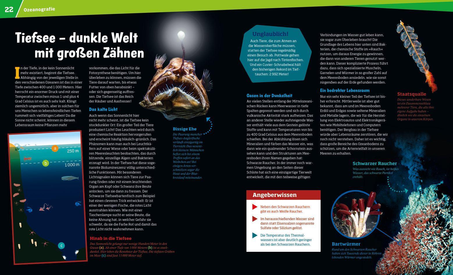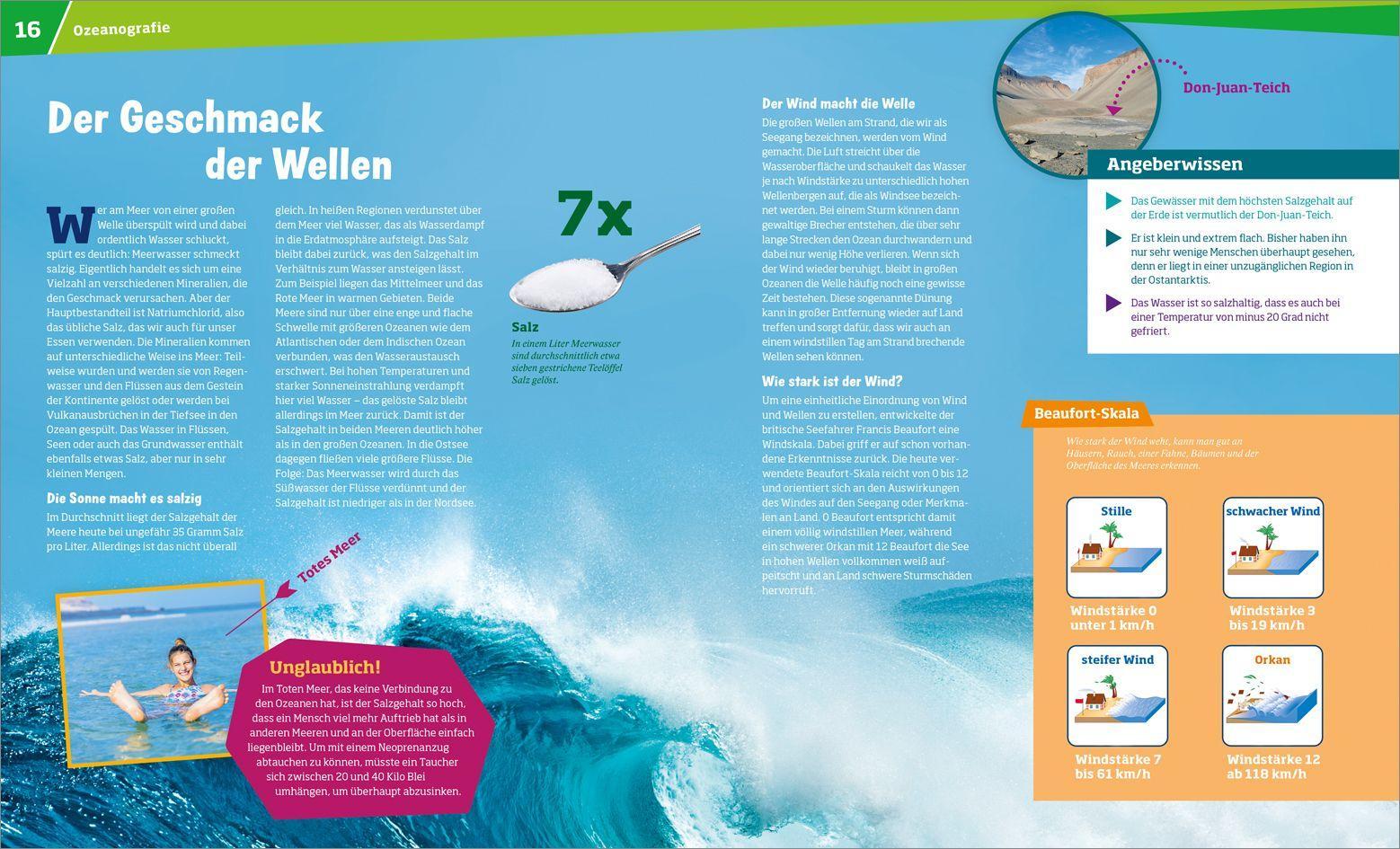 Meereslebewesen und Eisberge, Sturmfluten und Tiefseegräben - die Weltmeere stecken voller aufregender Wissensabenteuer! Mit diesem WAS IST WAS Buch können Kinder ab 8 Jahren die Vielfalt der Meere erforschen. Meeresbiologen geben einen kompakten Einstieg in die Ozeanografie und erklären, wie Strömungen und Gezeiten entstehen. Mit Forschungstauchern geht es hinab an den Haien vorbei bis zu den Unterwasservulkanen. Spannende Fakten lassen die Zeit der großen Segelschiffe lebendig werden, als Kapitäne und Matrosen noch an Seeungeheuer glaubten. Mit abwechslungsreichen Sachtexten, kleinen Interviews und viele Infokästen wird deutlich, was für den Erhalt dieser faszinierenden Wasserwelten getan wird und vor welch große Herausforderungen der Klimawandel die Menschheit auch in Bezug auf die Ozeane stellt. Eine faszinierende Themenvielfalt, verständlich und lebendig beschrieben und beeindruckend bebildert!