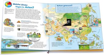 Spielerisch geht es auf Weltreise: Wie viel Kontinente gibt es? Welche Länder liegen in Europa? Was kann man in Deutschland, Österreich und der Schweiz entdecken? Was ist die Arktis und wie sieht es im Regenwald aus? WAS IST WAS stellt berühmte Sehenswürdigkeiten wie die Pyramiden von Gizeh vor, besucht in der Antarktis Kaiserpinguine beim Brüten und in den Tiefen tropischer Meere Seeanemone und Clownfisch. Erstes Entdeckerwissen, gepaart mit kleinen Spielen, Rätseln, Experimenten, erstaunlichen Rekorden, verblüffenden Infos und tollen Interviews sind vergnügliche Begleiter in diesem ersten Atlas für Kinder ab 4 Jahren.