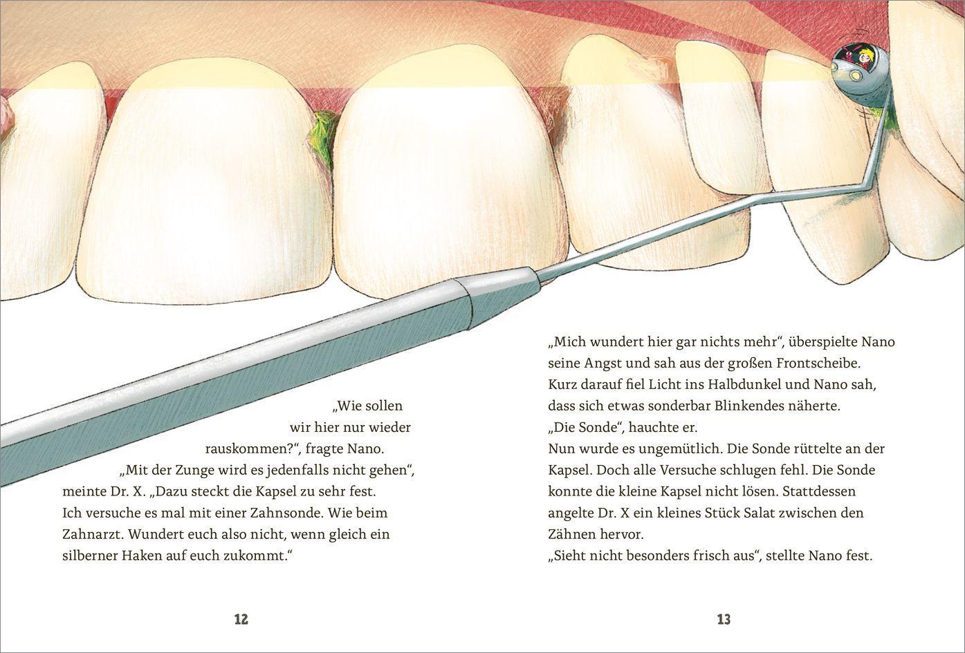 Der erste Band aus der Reihe "Der kleine Medicus" startet neu voll durch! Die Hauptfigur, Bodynaut Nano, befindet sich zu Beginn bereits mittendrin im menschlichen Körper. Erst nach und nach erinnert wird klar, wie es dazu kam, warum er - winzig klein geschrumpft - neben einem rosaroten Hasen in einer Mini-Kapsel sitzt und was der berühmte Dr. X und seine geniale Assistentin Micro Minitec damit zu tun haben. Zwischen bissigen Zähnen und waghalsigen Loopings auf der Zunge bietet der erste Band Abenteuer pur und jede Menge Unterhaltung für Kinder ab 8 Jahren.
