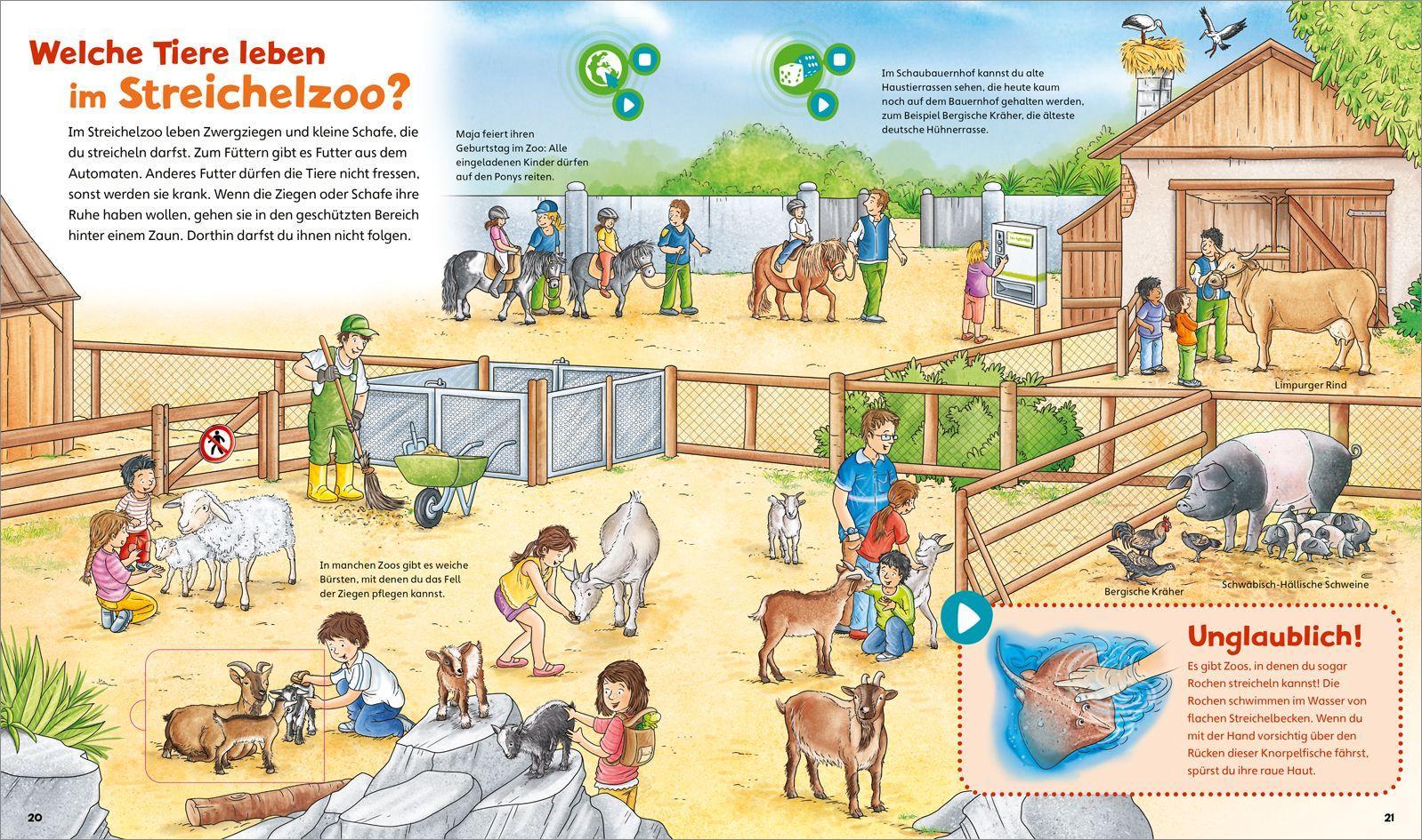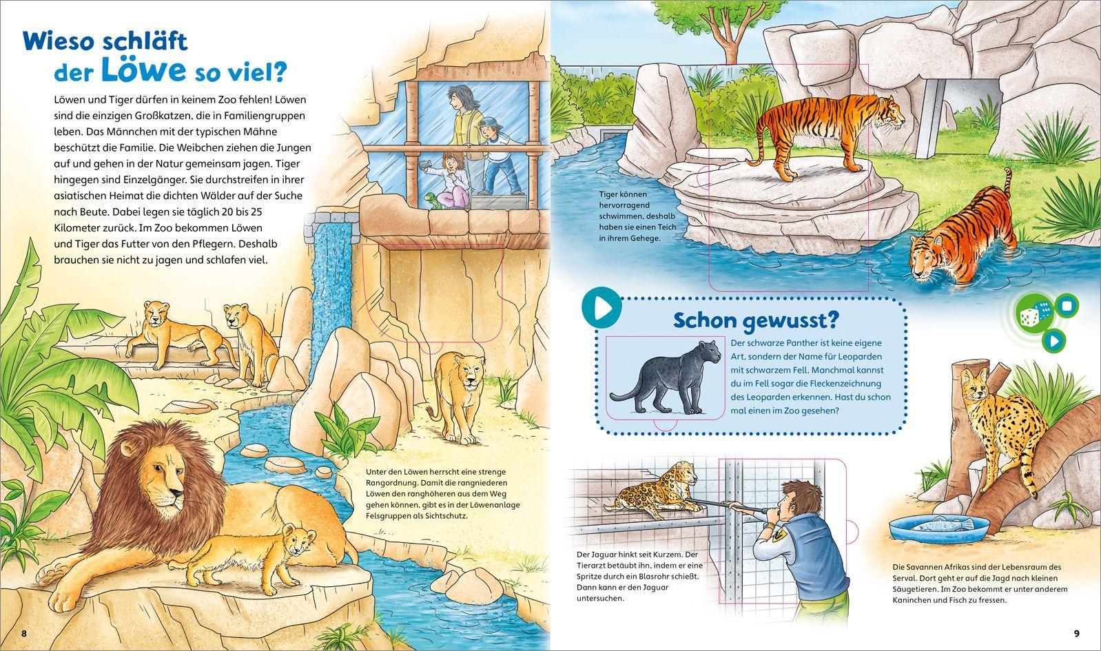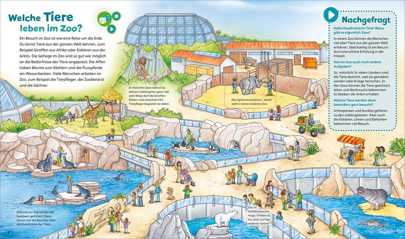 Wir gehen in den Zoo!Lerne, welche Tiere es im Zoo gibtErfahre Spannendes über Giraffen, Eisbären, Schlangen und Co.Höre Löwen, Affen und viele weitere Tiere