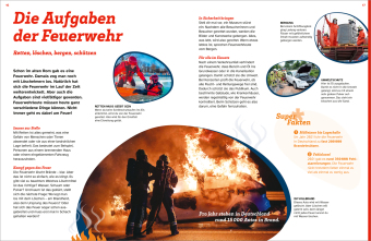 Leben retten geht nur mit Teamgeist. Feuer löschen, Fahrzeuge nach Unfällen bergen, Evakuierungen bei Hochwasser durchführen: Die Liste der Aufgaben der Feuerwehr ist umfangreich. Für diese und viele weitere Einsätze sind die Fahrzeuge mit Spezialwerkzeugen ausgestattet. Welche das sind, wie ein Einsatz vorbereitet und durchgeführt wird, erfahren die Leserinnen und Leser von Jörg Nießen. Er ist seit über 25 Jahren Feuerwehrmann aus Leidenschaft und berichtet eindrucksvoll von seiner Arbeit auf der Feuerwache. Die Kinder erfahren natürlich auch, wie sie sich selbst bei der Feuerwehr einbringen können. Ein spannendes Buch für Feuerwehr-Fans ab 8 Jahren.