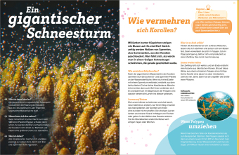 Korallenriffe sind die größten Bauwerke, die je von einem lebenden Wesen geschaffen wurden. Große und kleine Korallen, die aussehen wie Fächer, Bäumchen, Himbeeren oder Geweihe leuchten in prächtigen Farben. Diese bunten Regenwälder der Meere gehören zu den artenreichsten Orten der Welt! Millionen von winzigen Nacktschnecken, gut getarnten Seepferdchen, bunten Seesternen und riesigen Schildkröten leben dort. Aber was sind eigentlich Korallen? Wie entwickeln sie sich und was gefährdet sie? Die Leserinnen und Leser tauchen ab und finden heraus, wie Riffe entstehen, welche verschiedenen Arten es gibt, warum sie heute gefährdet sind und wie man sie schützen kann. Spannendes Sachwissen aus erster Hand für Kinder ab 8 Jahren.