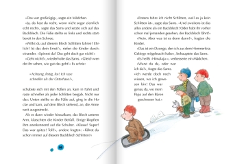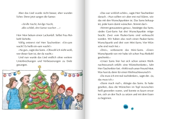 Für das Sams ist es das erste Weihnachten bei Herrn Taschenbier. Um genau zu sein: Es ist sogar sein allererstes Weihnachten überhaupt! Kein Wunder, dass es sich mächtig wundert: Wer sind diese kleinen Flügelwesen, die angeblich im Himmel herumschweben? Weshalb muss Papa Taschenbier ständig Geheimnisse haben, obwohl das Sams ganz fürchterlich neugierig ist? Und warum stellt man sich plötzlich Bäume ins Wohnzimmer, wenn sie doch sonst das ganze Jahr über draußen bleiben müssen? Wie gut, dass an Weihnachten so viel gesungen und gereimt wird, damit kennt das Sams sich aus!