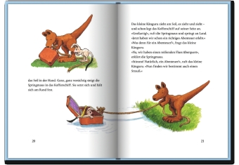 In "Das kleine Känguru. Alle Geschichten in einem Band" von Paul Maar begleiten Leserinnen und Leser das neugierige kleine Känguru und seine Freundin, die Springmaus, auf abenteuerliche Entdeckungsreisen. Gemeinsam meistern sie mit Kreativität und viel Einfallsreichtum verschiedenste Herausforderungen: vom Erreichen schwer zugänglicher Himbeeren über die Rettung aus einer überfluteten Wiese bis hin zum Beweis, dass Mäuse tatsächlich fliegen können. Dieser Sammelband vereint vier Geschichten voller Witz, Spannung und Überraschungen, bereichert durch zahlreiche farbige Illustrationen des Autors selbst. Ideal für Leseanfänger ab 6 Jahren, eignet sich das Buch sowohl zum Vorlesen als auch zum ersten Selberlesen und ist eine Bereicherung für jede junge Leseratte, die Abenteuer und Humor schätzt.