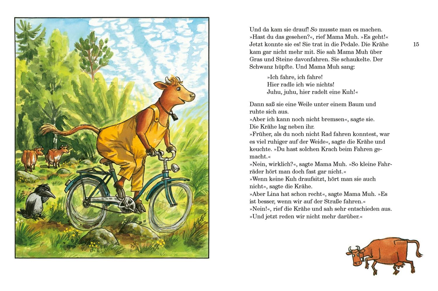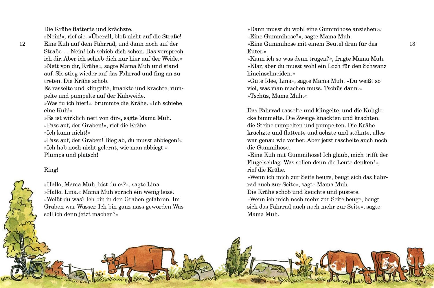 Wer Mama Muh kennt, weiß, dass sie eine ziemlich ungewöhnliche Kuh ist. Eine, die keine Lust hat, ihre besten Tage auf der Weide zu verdösen oder im Stall. Wenn andere Kühe zufrieden kauend in die Gegend glotzen, tut Mama Muh mit schöner Regelmäßigkeit eins: aus der Reihe tanzen. Hauptsache, dass der Wind ihr dabei so richtig schön um die Ohren pfeift. Wenn die Krähe aus dem Krähenwald auch oft der Flügelschlag trifft, was macht das schon. Schließlich ist sie Mama Muhs beste Freundin. Und beste Freundinnen müssen zusammenhalten, was immer geschieht.