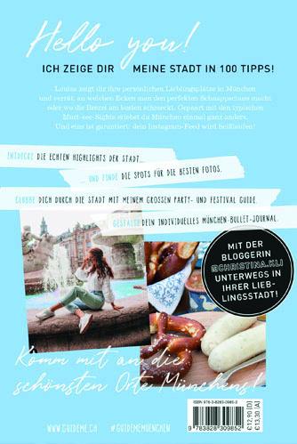 Der Reiseführer einer neuen Generation mit 100 kompakten Tipps. Die Travel-Bloggerin Christina Kling zeigt dir ihre Lieblingsstadt München und verrät an welcher Ecke man den perfekten Schnappschuss macht oder wo die Bowls am besten schmecken! Gepaart mit den typischen Must-See-Sights erlebst du München mit diesem Reiseführer einmal ganz anders. Und eins ist garantiert: Dein Instagram-Feed wird heißlaufen! Im modernen Design, mit individuellen Illustrationen und freien Kreativ-Seiten ist der GuideMe Reiseführer München dabei auch ein echter Hingucker und stylischer Begleiter. > ENTDECKE die echten Highlights der Stadt wie ein Einheimischer > FINDE mit dem Reiseführer die besten Spots für die schönsten Fotos > CLUBBE dich durch die Stadt mit dem großen Party- und Festival-Guide > GESTALTE dein individuelles Bullet-Journal auf freien Seiten | Blogger-Tipps | Foto-Hotspots | klassische Sehenswürdigkeiten | Restaurants & Cafés | Shopping | Clubs & Bars | Events & Festivals | Kreativ-Teil zum selber ausfüllen | freie Seiten | Reiseführer mit herausnehmbarem Stadtplan