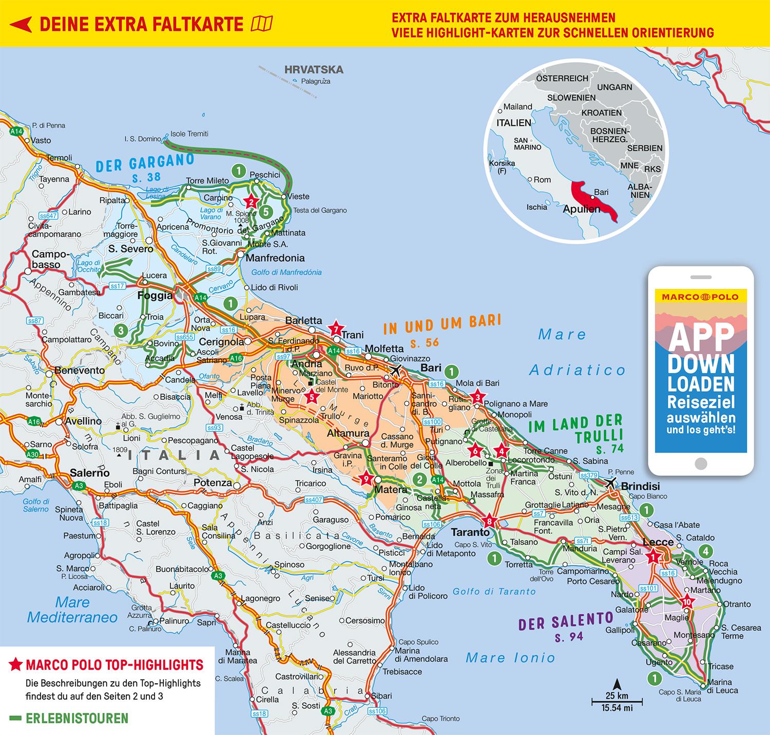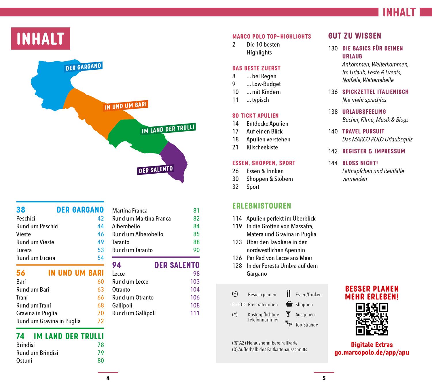 Die Königin des Sommers kennenlernen mit dem MARCO POLO Reiseführer Apulien Durchtanzte Sommernächte oder spannendes Sightseeing-Programm? In Apulien kannst du beides haben! Nicht umsonst wird Italiens Stiefelabsatz auch "Regina dell'Estate", also Königin des Sommers genannt. Wo die Beachpartys schon am Nachmittag beginnen und eindrucksvolle Kalksteinwände über blauem Meer fantastische Fotospots bereithalten, verbringst du mit dem MARCO POLO Reiseführer Apulien genau den Urlaub, den du dir wünschst! Apuliens schönste Seiten? Mit den MARCO POLO Erlebnistouren schnell entdeckt! Mit dem Auto zum abgelegenen Küstenspot an der Adria, zu Fuß durch orientalische Städtchen inmitten von Olivenhainen oder mit dem Rad zu verborgenen Behausungen und Kirchen in märchenhaften Grotten - und danach: Antipasti schlemmen und eisgekühlten Espresso genießen. Egal, wie du deinen Urlaub am liebsten verbringst, "La Puglia" hat für jeden Geschmack etwas zu bieten. Lass dich von den Erlebnistouren in deinem MARCO POLO Reiseführer Apulien inspirieren und stell dir deinen Traumurlaub zusammen!