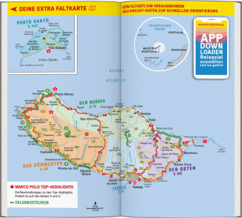 Mit den MARCO POLO Erlebnistouren verpasst du keine der Besonderheiten der Insel. Die kostenlose MARCO POLO Touren App auf deinem Handy sorgt für super Orientierung dank Online- und Offline-Karten. So kannst du Madeiras höchste Gipfel erkunden, entlang der berühmten Levadas durch grüne Täler schlendern oder die steilen Bananenterrassen des Südwestens der Insel bewundern.