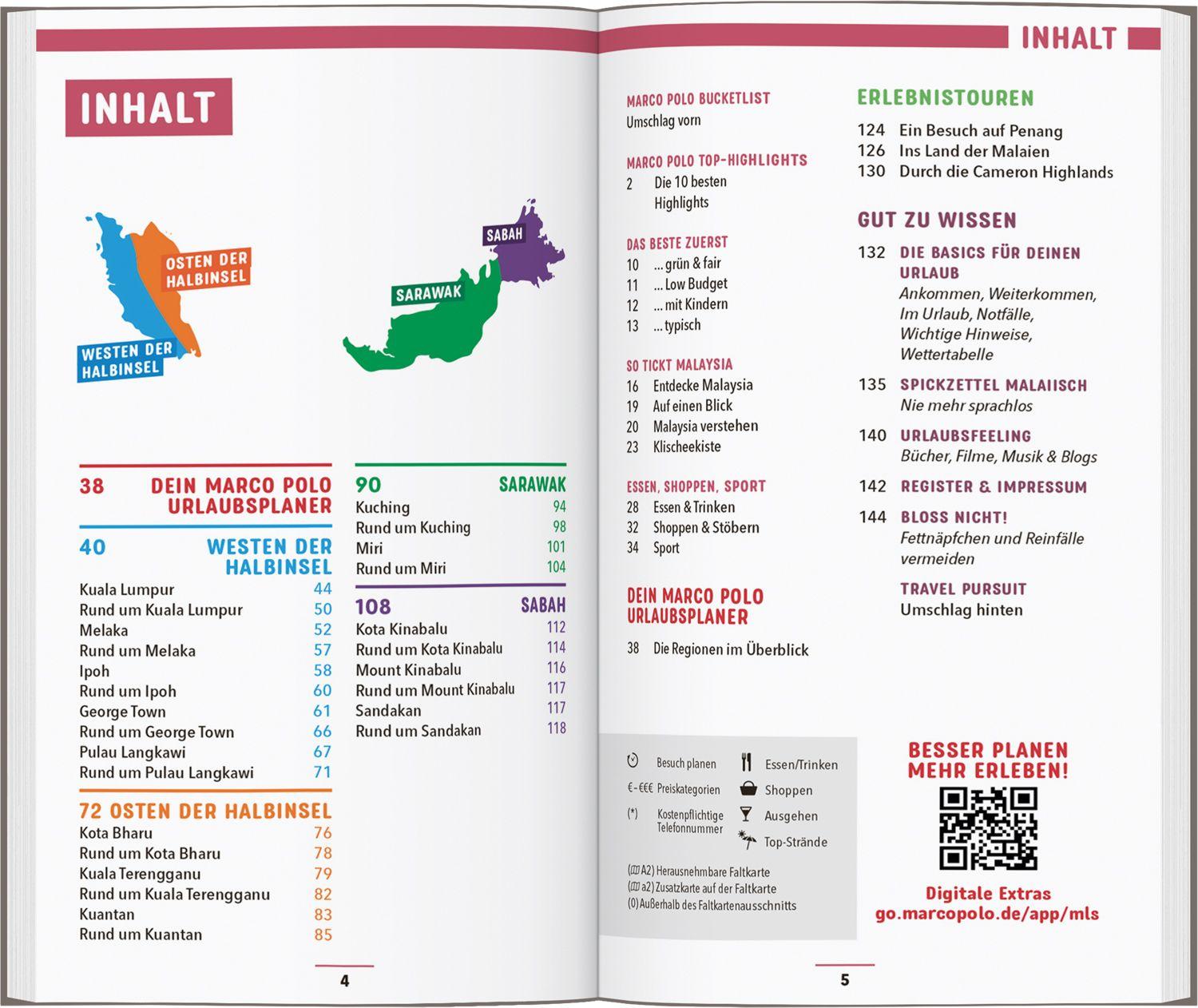Mit den Tipps in deinem MARCO POLO Reiseführer bist du schon vor deiner Reise bestens vorbereitet und kannst deinen Urlaub entspannt genießen. Hier findest du alle wichtigen Infos zu Land und Leuten, zur Anreise und zum Weiterkommen vor Ort. Mit dem praktischen Malaiisch-Sprachführer fehlen dir nie die Worte und die Faltkarte zum Herausnehmen sorgt dafür, dass du immer den Überblick behältst. Entdecke Malaysia in deinem eigenen Rhythmus und erlebe unvergessliche Momente mit MARCO POLO!