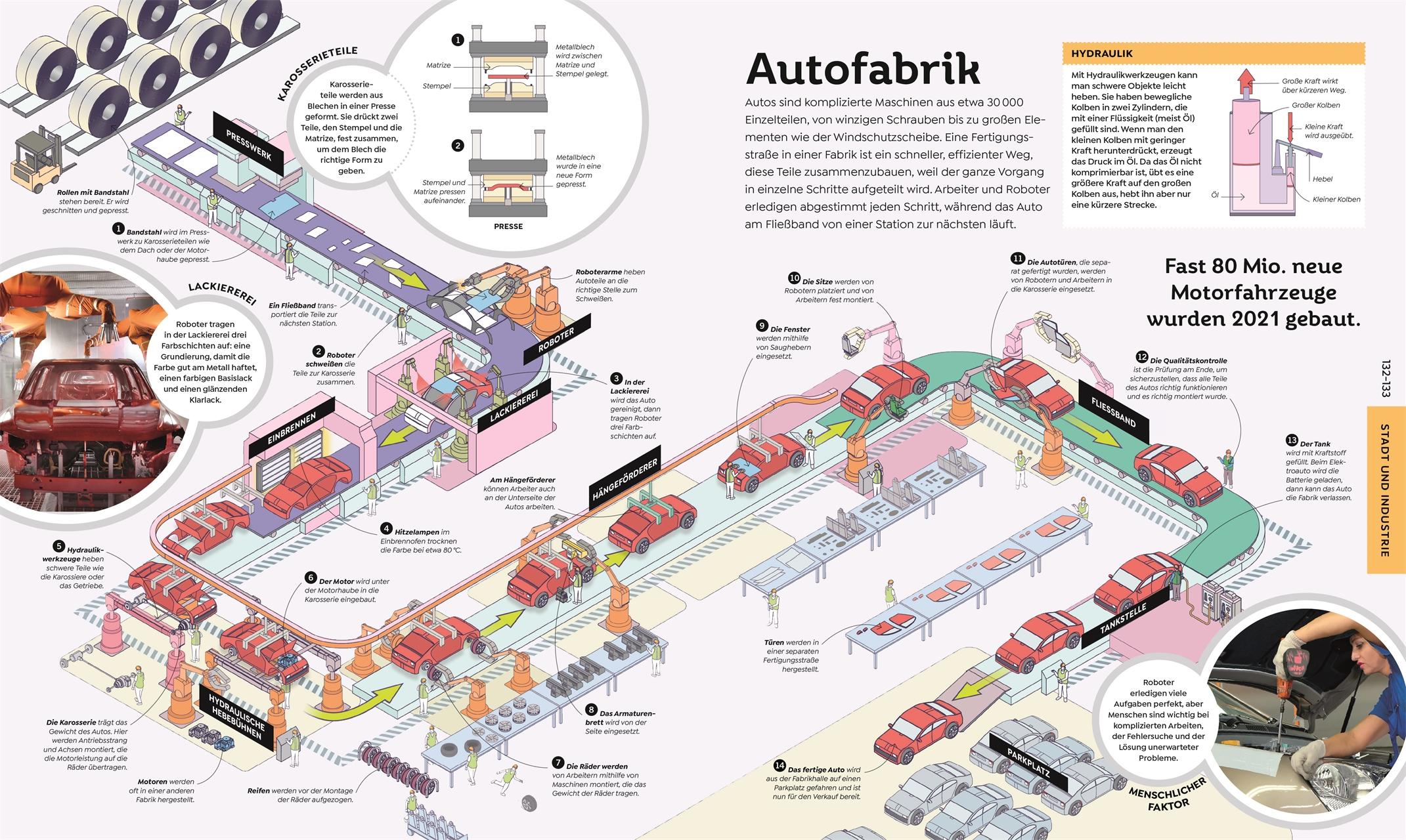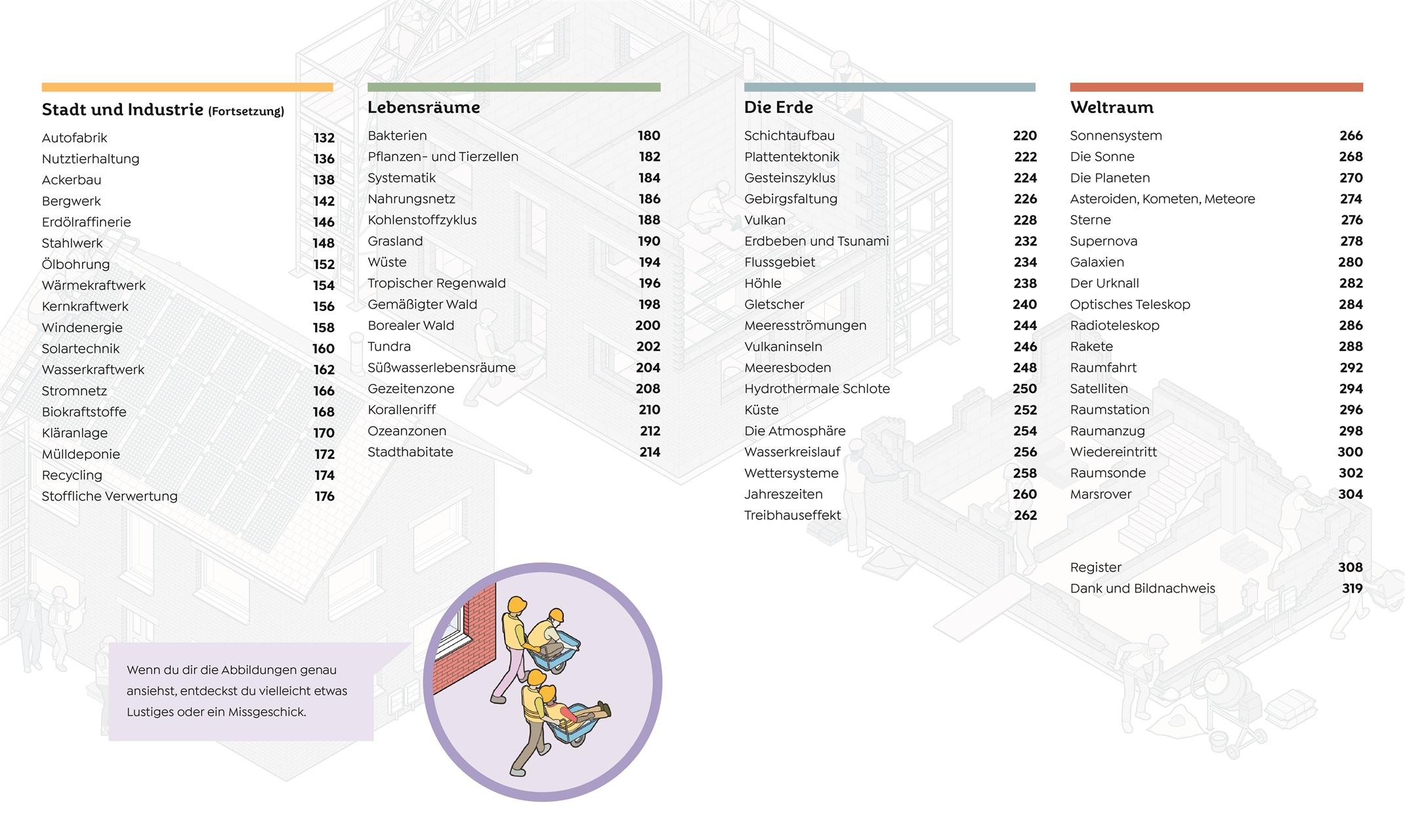 Wie funktioniert die Welt? Von der Nervenzelle bis zum Schwarzen Loch: Dieses absolut einzigartige Lexikon liefert die Erklärung zu wirklich allem! Doppelseitige Querschnitte und detaillierte Grafiken erklären über 120 komplexe Abläufe und erstaunliche Prozesse unserer alltäglichen Welt, darunter auch biologische und geologische Prozesse sowie Prozesse im Körper. Mit diesem visuell einmaligen Blick hinter die Kulissen vermittelt die Enzyklopädie neugierigen Kindern ab 10 Jahren spannende Fakten zu Wissenschaft und Technik , der menschlichen Anatomie und faszinierenden Naturphänomenen. Komplexe Systeme verstehen - Wie die Dinge funktionieren: Mit einzigartigen Querschnitten und Grafiken verstehen, wie das Wasser aus der Leitung kommt und wie ein Krankenhaus betrieben wird - Von den kleinsten Bausteinen des Lebens bis zum großen Ganzen: der menschliche Körper, unser Zuhause, Stadt und Industrie, Natur, Erde und Weltraum - 120 Abläufe und Prozesse Schritt für Schritt erklärt: Was passiert am Flughafen? Wie funktioniert ein Wasserkraftwerk? Wie kommen die Waren in den Supermarkt? - Blick hinter die Kulissen: Detaillierte 3-D-Grafiken zeigen das Innenleben von Gebäuden, Geräten und Maschinen - Faktenreich und visuell anschaulich: Antworten komplexe Fragen, besser erklärt als in jedem Schulbuch oder auf Wikipedia Das große Lexikon über alles, was die Welt bewegt Wie arbeitet unser Immunsystem? Was passiert in einem Operationssaal? Welchen Lebenszyklus durchläuft ein Stern? Wie sieht ein Handy von innen aus? Wie vermehren sich Pilze und was passiert bei einem Erdbeben? Fragen über Fragen! In diesem Nachschlagewerk für die ganze Familie entdecken Wissens-Fans, was hinter den Kulissen der Welt passiert und wie komplexe Abläufe und Prozesse unser Leben am Laufen halten - von den Kreisläufen in der Natur bis zu den Geheimnissen des Universums, von Wirtschaft bis Industrie, von aktueller Technik bis zur modernen Wissenschaft. Buch auf, es gibt was zu entdecken! Die einzigartige Enzyklopädie mit coolen Querschnitten und Grafiken zu den verborgenen Abläufen unserer Welt. Dieses Buch ist bei Antolin verfügbar.
