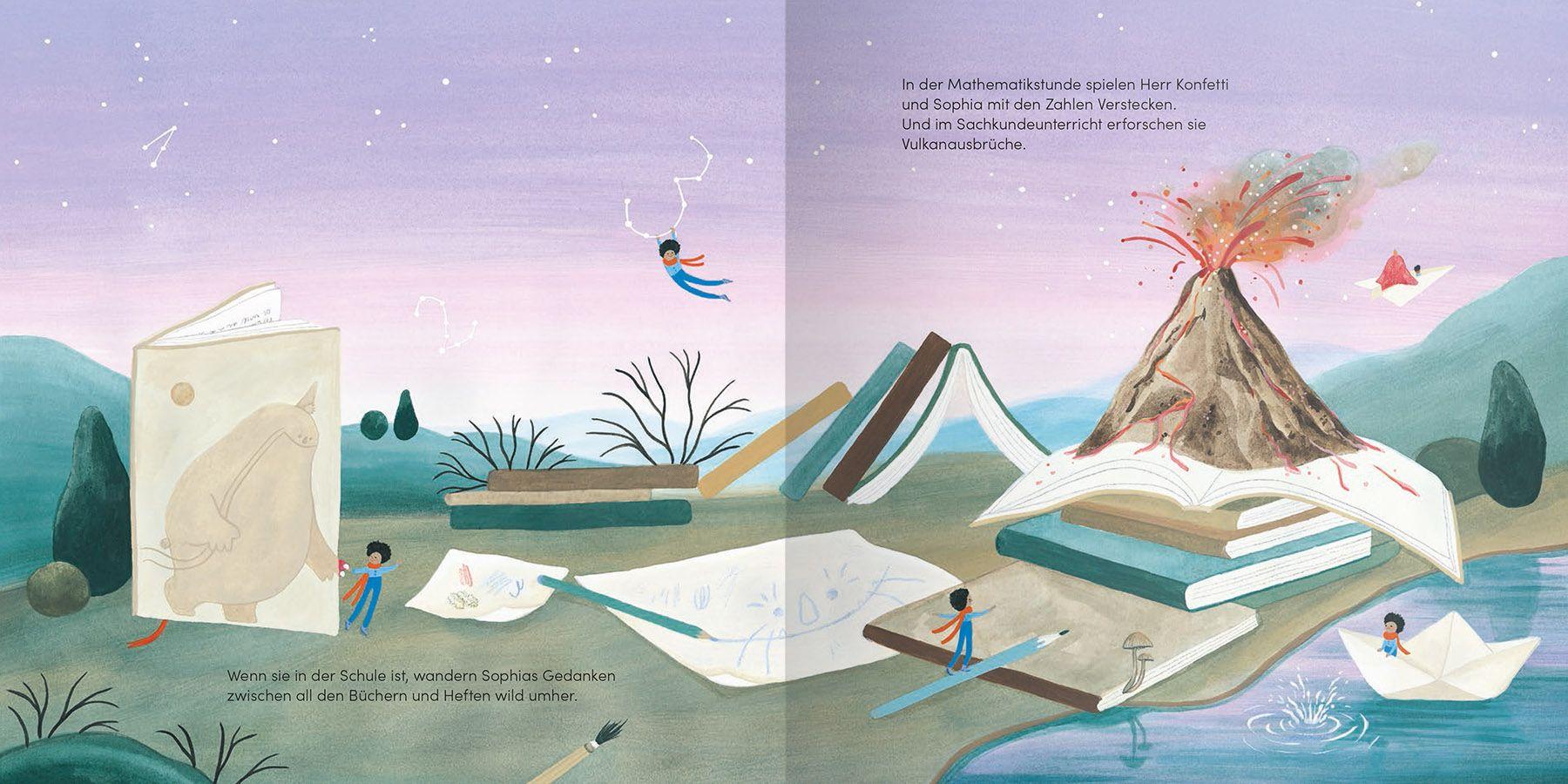 Sophia kann mit ihrer blühenden Fantasie Berge versetzen. Bei ihren Abenteuern wird sie immer von ihrem imaginären Freund begleitet: Herr Konfetti. Gemeinsam verwandeln sie Regentage in Sonnentage, verzaubern die langweiligsten Orte in beeindruckende Dschungel und reisen zu den höchsten Vulkanen und tiefsten Schluchten. Aber Sophias Papa Mark macht sich Sorgen: Lebt seine Tochter zu sehr in ihrer eigenen Welt? Ein Doktor ermutigt ihn jedoch, Sophias Gabe der Fantasie zu fördern. So beschließt Mark, Herr Konfetti eine Chance zu geben. Als Sophia und Herr Konfetti ein Stofftier finden, machen sie sich gemeinsam mit Papa Mark auf die Suche nach seinem Besitzer Leo, der sich verirrt hat und Hilfe braucht. Mit Herrn Konfettis Hilfe können sie Leo schließlich finden. Papa Mark erkennt, dass Sophias Fantasie und ihre besondere Freundschaft zu Herrn Konfetti in Wahrheit keine Schwäche ist, sondern ihre größte Stärke - denn er ermutigt sie, über sich hinauszuwachsen und Anderen zu helfen.