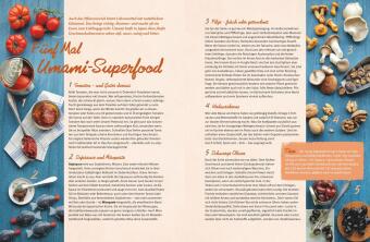 - Sonderseiten mit perfekten Soulfood-Paaren: warum z. B. Nudeln und Brühe oder Tofu und Sojasauce so perfekt zusammenpassen und guttun - plus vier bis fünf Kurzrezepte.