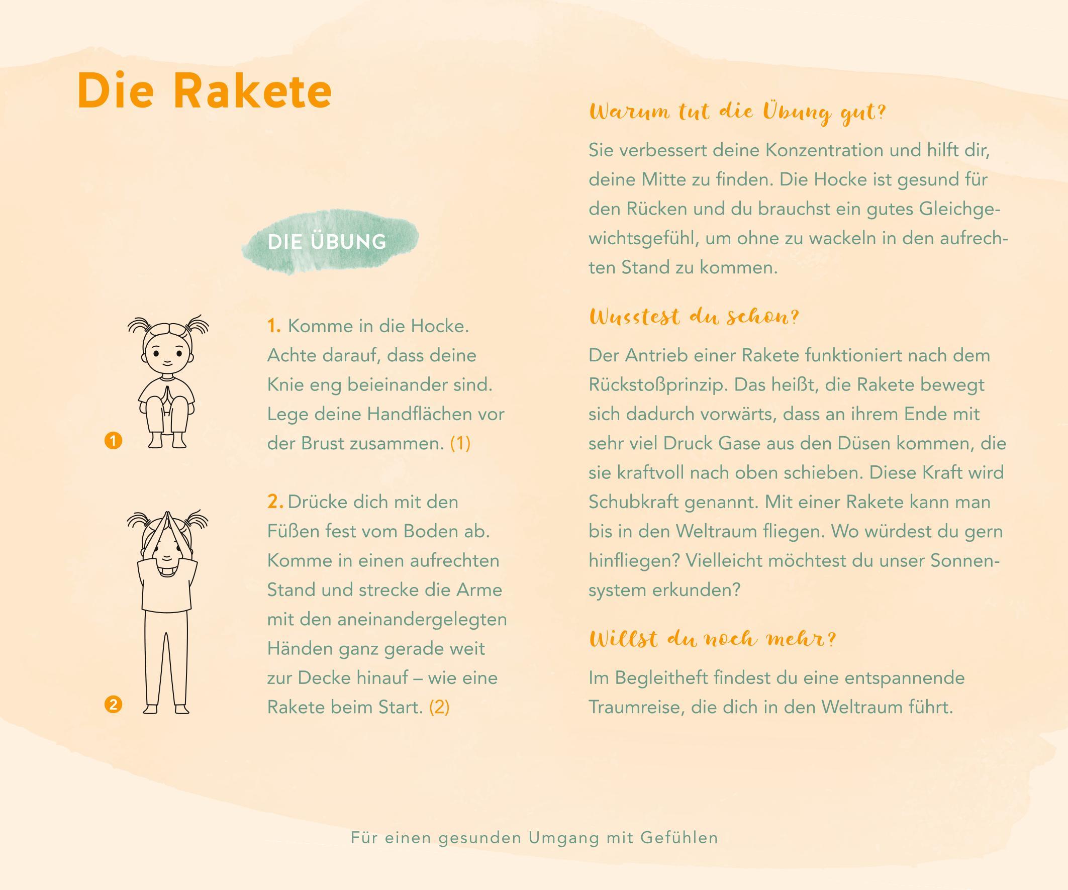 Die Yoga-Box für Kinder bringt Freude ins Wohnzimmer, den Kindergarten oder die Vorschule. Auf 50 liebevoll gestalteten Karten finden sich einfache und gleichzeitig abwechslungsreiche Übungen, die dazu einladen, immer wieder neue, individuelle Übungsprogramme zusammenzustellen. Yoga bietet einen guten Ausgleich: Die Übungen stärken das Körperbewusstsein und die kindliche Körpermotorik, verhindern und korrigieren Haltungsschäden, erhöhen die Konzentrationsfähigkeit und trainieren das innere Gleichgewicht Ihres Kindes. Zu jeder Yogaübung, wie dem Hund, Baum, Krieger oder Schmetterling, gibt es neben einer kinderleichten Anleitung auch Informationen und Fragen rund um das jeweilige Thema - Bewegung und spielerisches Lernen in einem.