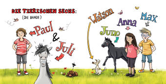 Paul, Juli, Anna und Max sind die besten Freunde. Doch so richtig komplett ist ihre Bande erst, seit auch Hund Watson und Fohlen Juno dazugehören. Zusammen meistern die Tierischen Sechs jedes Abenteuer. Werde auch du Teil der Bande und lass all deine Freundinnen und Freunde in dieses Buch hineinschreiben. Finde heraus, was ihr Lieblingstier ist, was ihnen an einer Freundschaft wichtig ist, was sie gar nicht mögen und worüber sie so richtig lachen können. Macht alle mit - in diesem Freundebuch ist Platz für die ganze Bande!