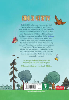 Ecki Eichhörnchen und Hermine Igel sind grundverschieden - und die besten Freunde. Zusammen leben sie in einer alten Burgruine im Wald. Die beiden staunen nicht schlecht, als eines Tages ein herrenloser Koffer in ihrem Innenhof auftaucht. Während Hermine erst einmal auf den Besitzer warten will - der kann doch nicht weit sein! -, wittert Ecki seine Chance, endlich zu einem waschechten Detektiv zu werden. Und da tatsächlich niemand auftaucht, dem der Koffer gehören könnte, beginnen Eichhörnchen und Igel mit den Ermittlungen. Woher kommt der Koffer? Wer hat ihn hier abgestellt? Und viel wichtiger: Was hat es mit dem seltsamen Inhalt auf sich? Eins ist klar: Im stillen Wald wird es lustig, spannend - und laut!