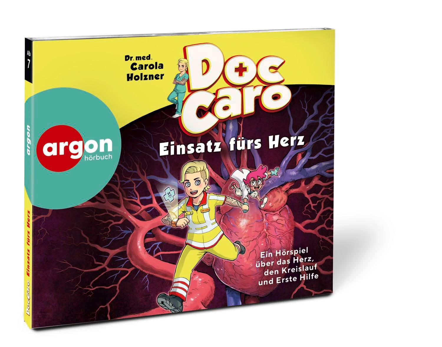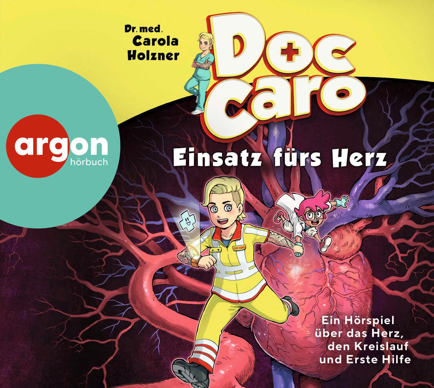Doc Caro wird zu einem Notfall gerufen - Schmerzen im Brustkorb, Schwindel, Kurzatmigkeit. Doch Doc Caro kommt rechtzeitig und kann helfen! Gemeinsam mit Momo und den Hörer*innen begibt sie sich auf eine Reise in unseren Körper ...Was passiert da genau in unseren Adern, wieso fließt das Blut im Kreis und was macht das Herz die ganze Zeit? Diese und weitere Kinderfragen beantwortet Doc Caro unterhaltsam und mit viel Humor!Dieses spannende Hörbuch ist ein Must have nicht nur für Fans - denn Wissen kann Leben retten!