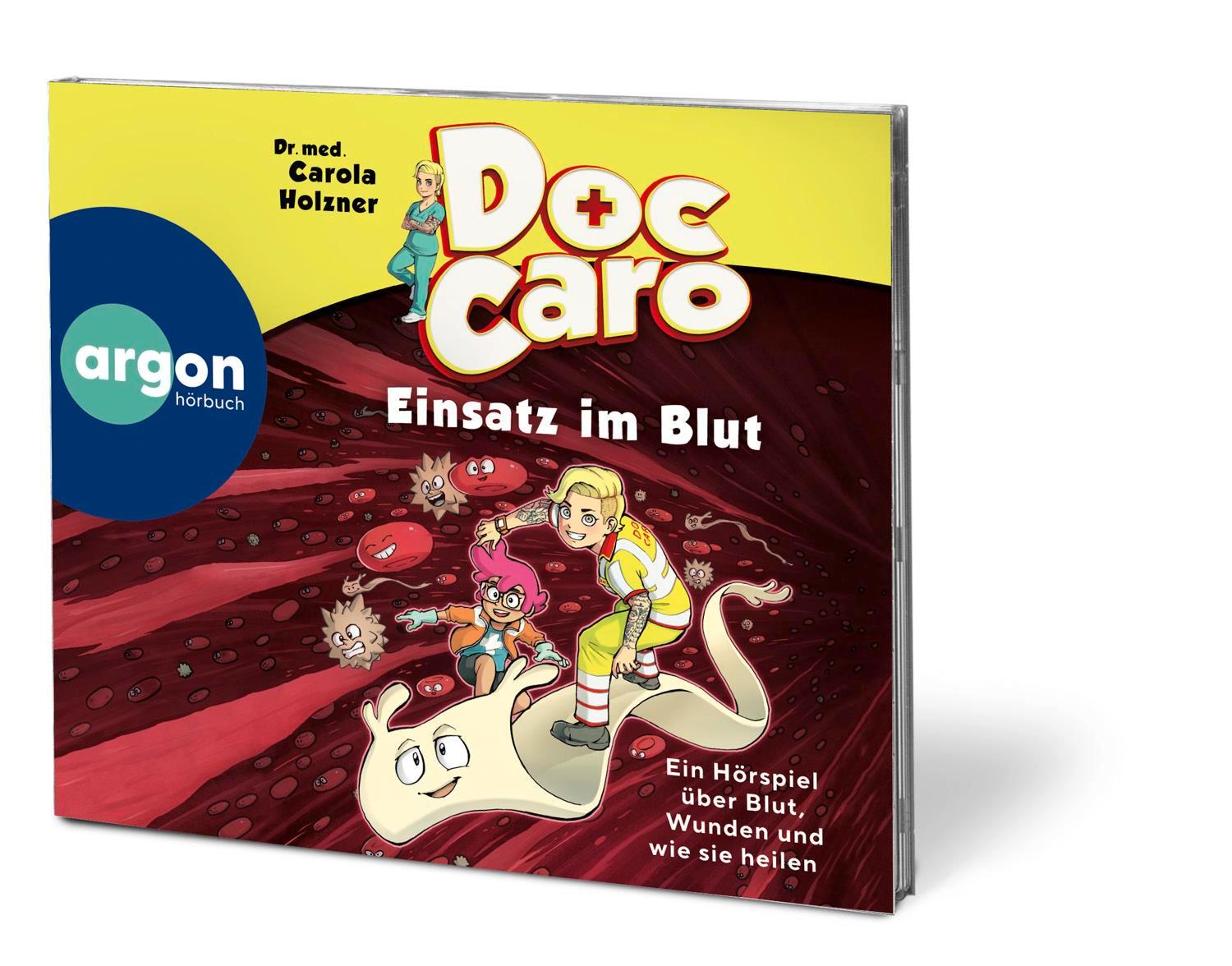 Doc Caros große Mission: Wissen vermitteln und Leben retten! Doc Caro wird zu einem Unfall gerufen - ein Mädchen hat sich im Skate-Park verletzt. Doc Caro kann die Platzwunde versorgen und begibt sich gemeinsam mit dem jungen Momo und den Hörer*innen auf eine faszinierende Reise in den Körper der Verletzten ...Was passiert, wenn wir bluten, ist das gefährlich und wie kann man helfen? Diese und weitere Fragen rund ums Thema Blut und Wundheilung beantwortet Doc Caro unterhaltsam und mit viel Humor!Ein Must-have nicht nur für Fans!