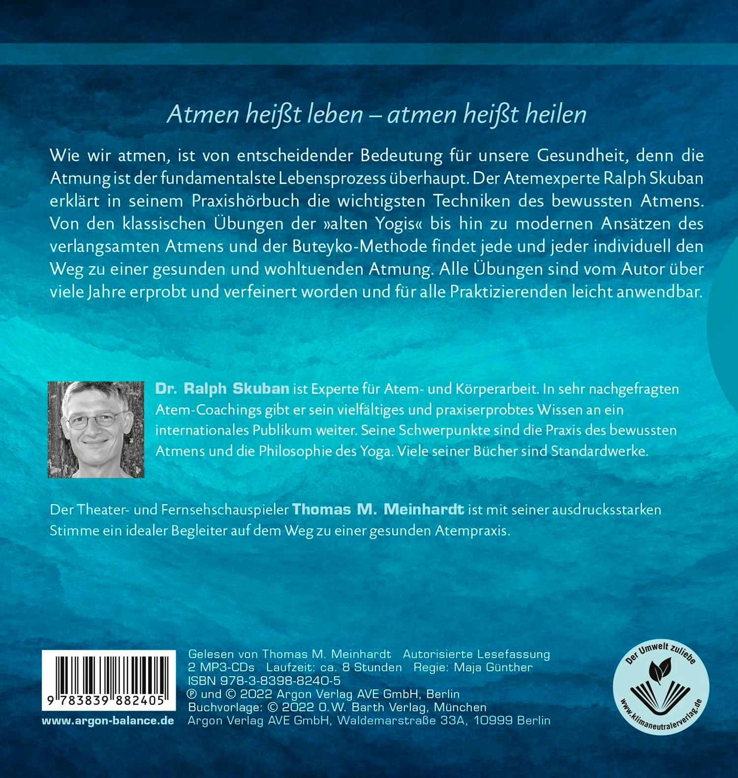 Dr. Ralph Skuban ist promovierter Politikwissenschaftler und war zunächst viele Jahre im sozialen Bereich tätig. Mit seiner Frau Nella gründete er die Skuban Akademie südlich von München und leitet Ausbildungen rund um Themen der Atem- und Körperarbeit. Seine Schwerpunkte sind die Praxis des Atmens und die Philosophie des Yoga. Er hält Vorträge zu spirituellen Themen auch in anderen Traditionen, und seine Bücher werden regelmäßig zu Standardwerken. In seinen sehr nachgefragten Atem-Coachings gibt er sein vielfältiges und praxiserprobtes Wissen zur Atem-Arbeit weiter.Thomas M. Meinhardt hat sich als Fernseh- und Bühnenschauspieler einen Namen gemacht und setzte seine markante Stimme sehr erfolgreich als Hörbuchsprecher ein.