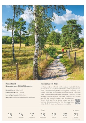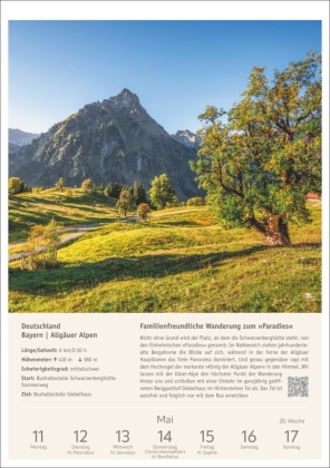 - Der Weg ist das Ziel! Entdecken Sie die besten Wander-Strecken Europas!- Natur pur, abwechslungsreiche Landschaften oder die grünen Hotspots der Stadt genießen: Wanderkalender mit 53 brillanten Bildern und Touren von gemütlich bis herausfordernd- Mit Kurzbeschreibungen zu jeder Wanderroute inklusive technischer Details (Start/Ziel, Länge, Höhenmeter, Anforderungen) und QR-Codes für weitere Informationen- Macht regelmäßig Lust auf die nächste Etappe: Fotokalender im kompakten 25 x 35,5 cm Hochformat, der an jeder Wand einen Platz findet- Unterwegs zu den schönsten Zielen dieser Welt: die Wochenkalender von Harenberg im Athesia Kalenderverlag