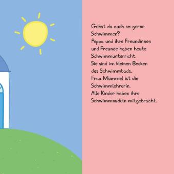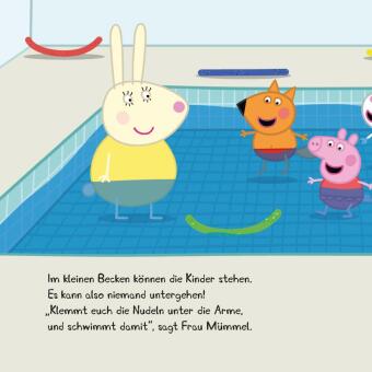 Peppa ist aufgeregt. Heute geht es ins Schwimmbad. Frau Mümmel ist die Schwimmlehrerin und gibt Peppa und ihren