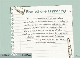 Dieses Aufstellbuch steht dir bei allen Herausforderungen und Gefühlen deiner Schwangerschaft zur Seite. Es begleitet dich chronologisch durch diese bedeutsame Zeit und lässt dich mit deinen Freuden, Sorgen und all den großen und kleinen Besonderheiten nicht allein.