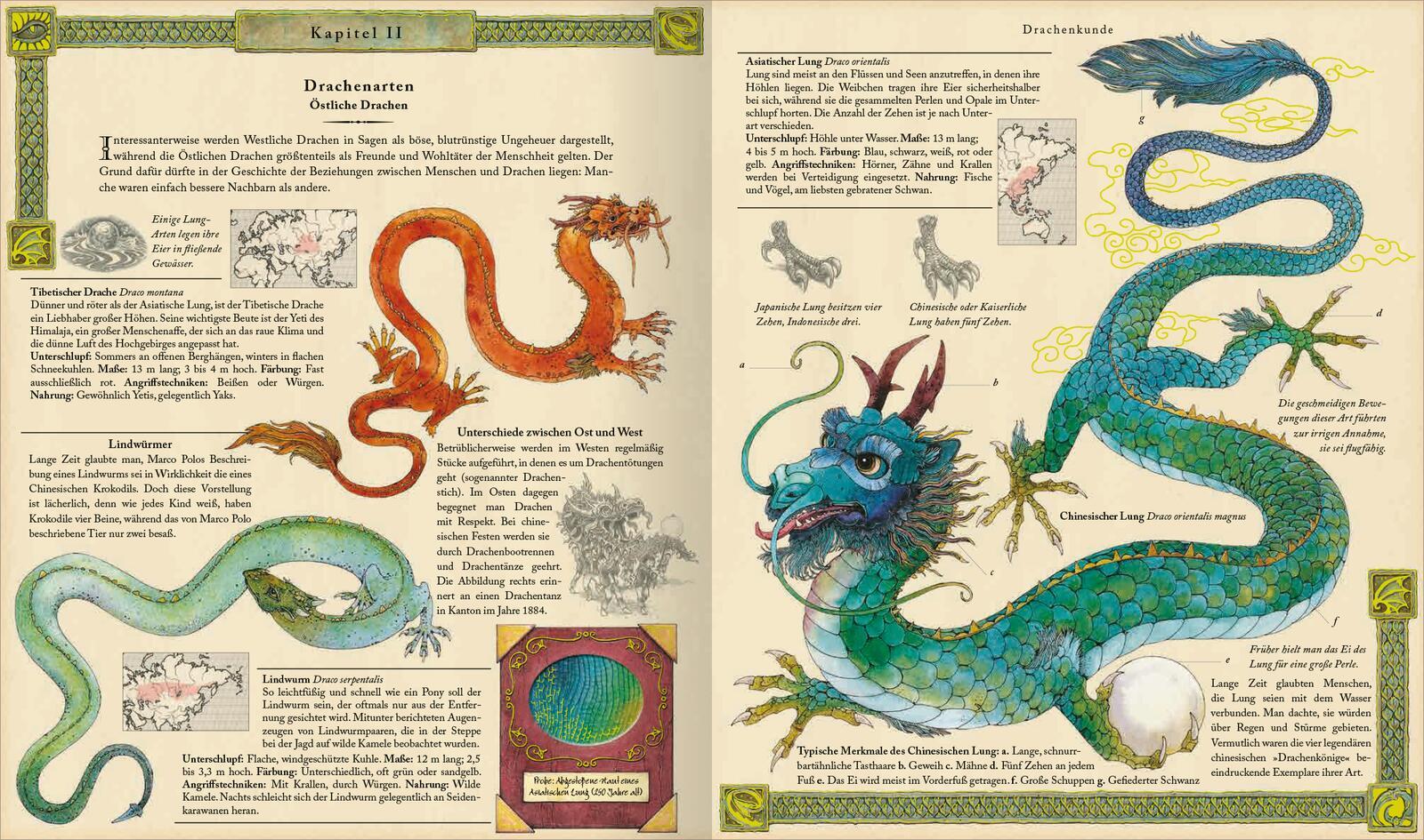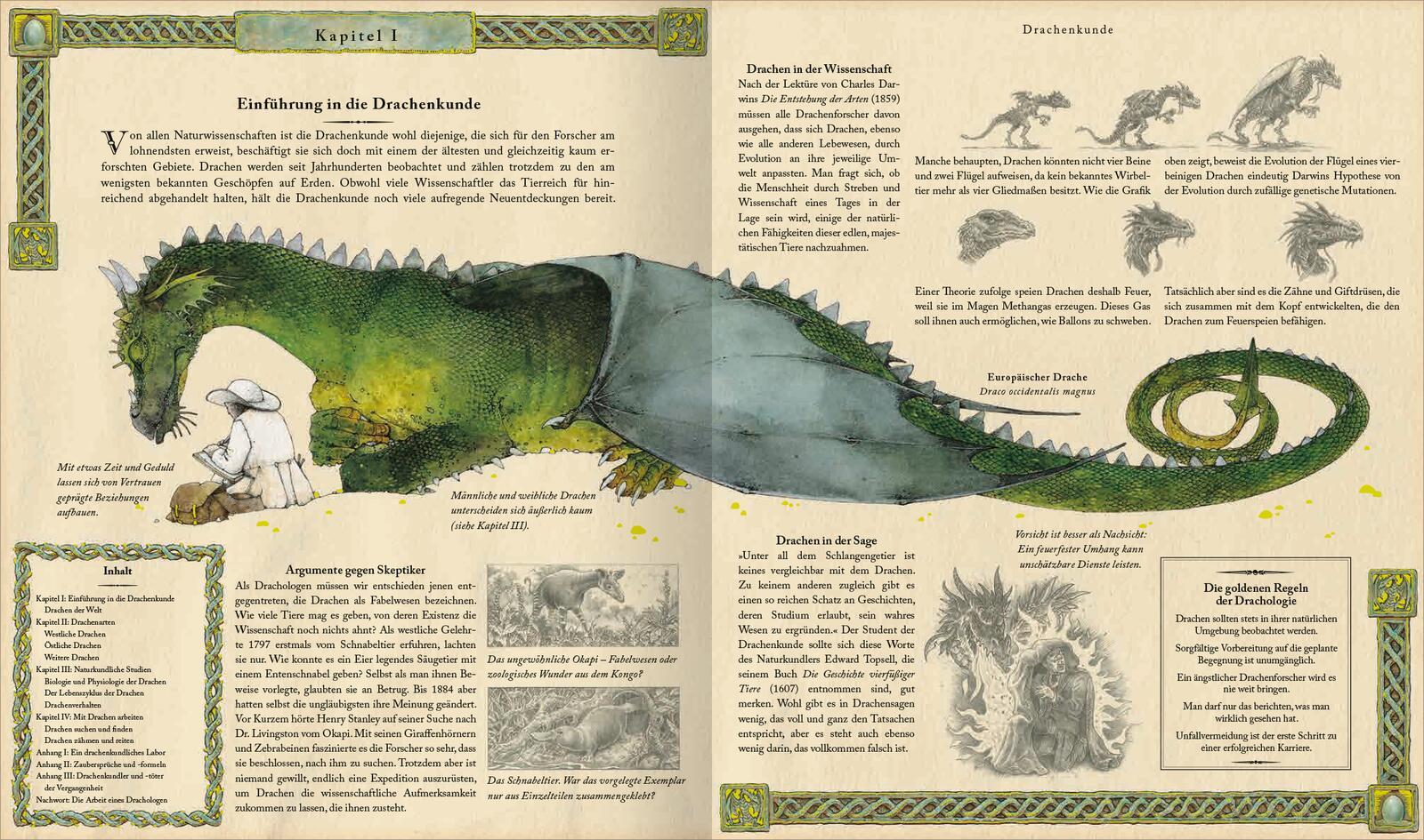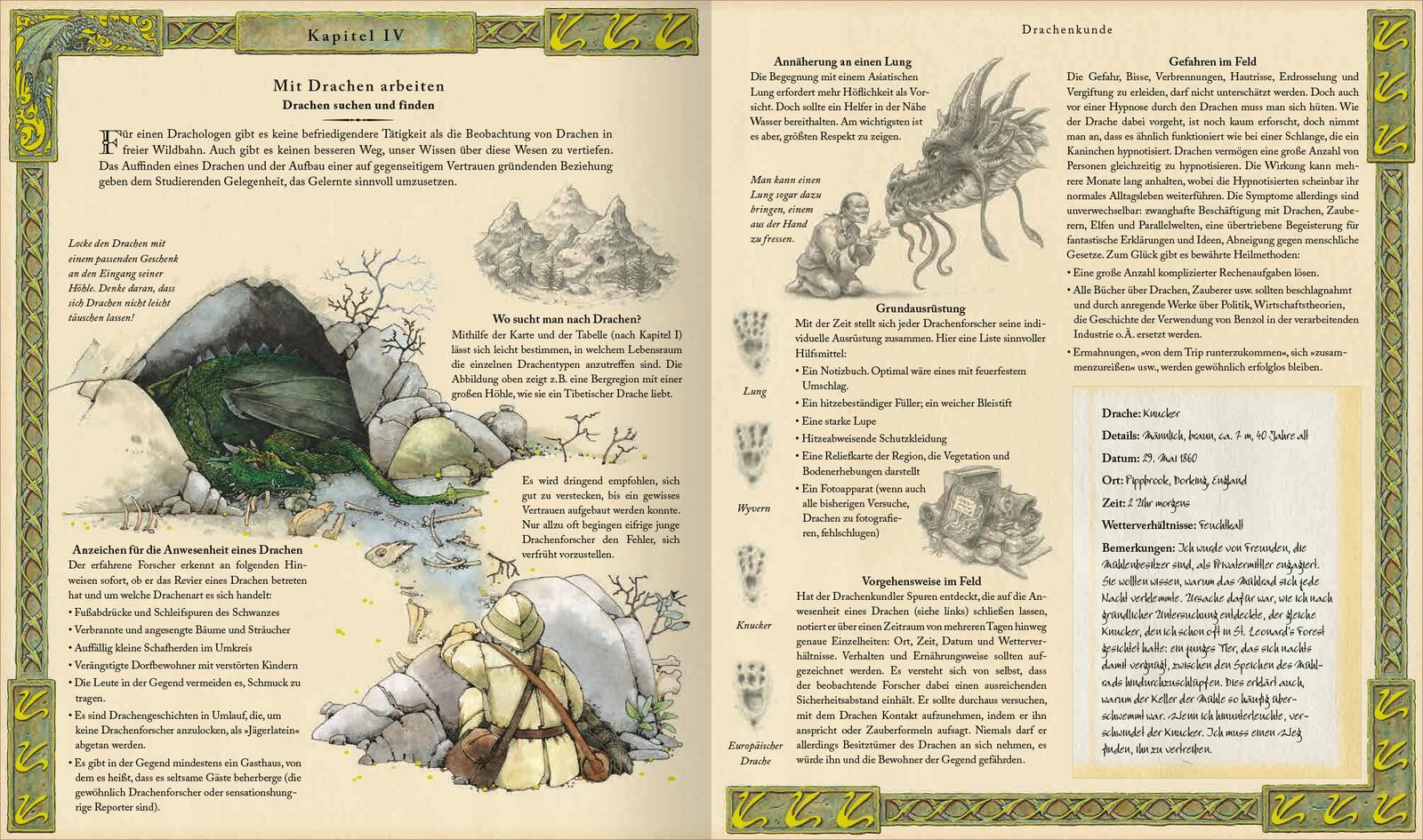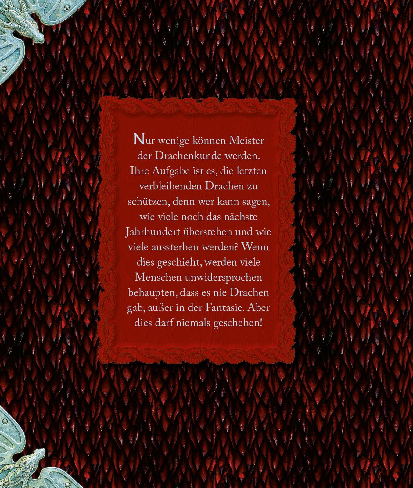 Zum 20-jährigen Jubiläum wieder aufgelegt: das ultimative Handbuch zur Drachenkunde! Dieses umfassende, wunderbar illustrierte Forscherhandbuch ist unerlässlich, um ein Meister oder eine Meisterin des Fachs zu werden! Der berühmte Drachologe Dr. Ernest Drake beschreibt fachkundig und mit vielen Beispielen und Bildern die verschiedenen Drachenarten, gibt Tipps für die Arbeit mit ihnen, wertvolle Hinweise zur Biologie und Physiologie der Tiere, hilfreiche Anleitungen zum Aufbau des drachenkundlichen Labors sowie weitere Hilfestellungen für den richtigen Umgang mit den Tieren in Form von Zauberformeln und Ähnlichem. Zur besonderen Veranschaulichung gibt es Proben von Drachenflügeln, Drachenhaut und Drachenstaub sowie viele Klappen und weitere Beilagen zu entdecken. Für alle echten Drachenfans! Die außergewöhnliche Gestaltung macht dieses Buch zu einem genialen Nachschlagewerk für alle, die sich sicher sind: Drachen gibt es wirkllich!