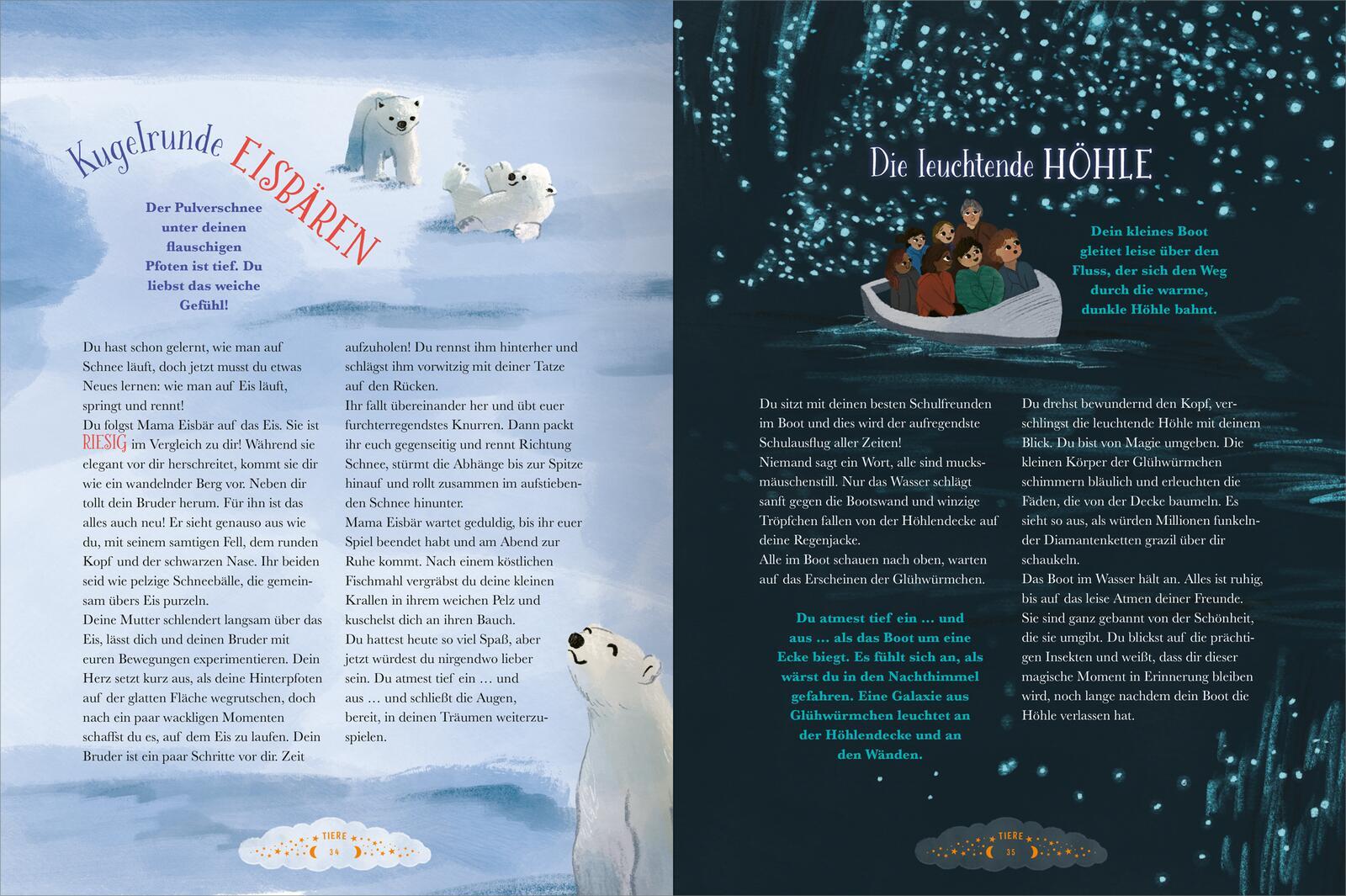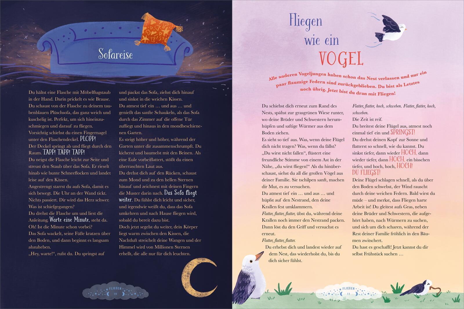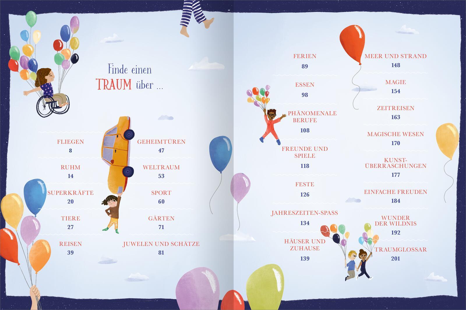 Ob fliegende Abenteuer durch den sternenklaren Nachthimmel, Schatzsuchen am Strand, Begegnungen mit sprechenden Tieren oder Ausflüge in ferne Galaxien - die kurzen Geschichten sind so vielfältig wie die Träume selbst. Kinder können als Superhelden die Welt retten, mit Zauberstäben Magie versprühen oder in geheimen Gärten verborgene Schätze entdecken. Das Traumglossar lädt dazu ein, gezielt Geschichten auszuwählen, die genau zur Stimmung des Abends passen. "Ein Traum für jede Nacht" ist eine Einladung, den Tag entspannt ausklingen zu lassen und mit wundervollen Geschichten ins Reich der Träume zu gleiten. Was möchtest du heute Nacht träumen? In "Ein Traum für jede Nacht" findet ihr jeden Abend die perfekte Geschichte, um sanft ins Traumland zu reisen. Mit über 150 liebevoll erzählten Vorlesegeschichten und einem besonderen Traumglossar lädt dieses Vorlesebuch Kinder ab 4 Jahren dazu ein, ihre ganz persönlichen Traumwelten zu entdecken.Ein liebevoll gestaltetes Buch, das die Fantasie beflügelt, Geborgenheit schenkt und jeden Abend zu einem kleinen Abenteuer macht.