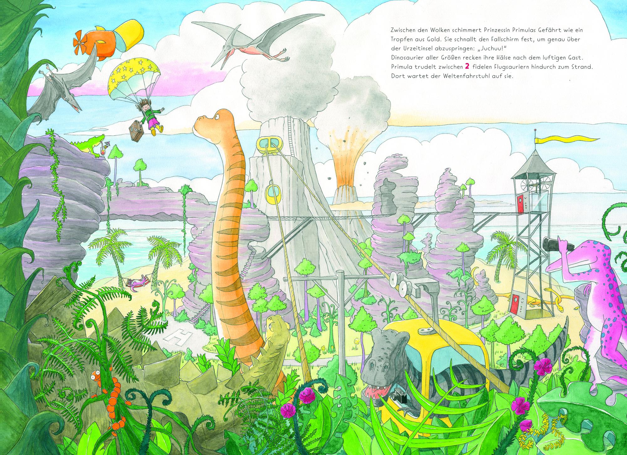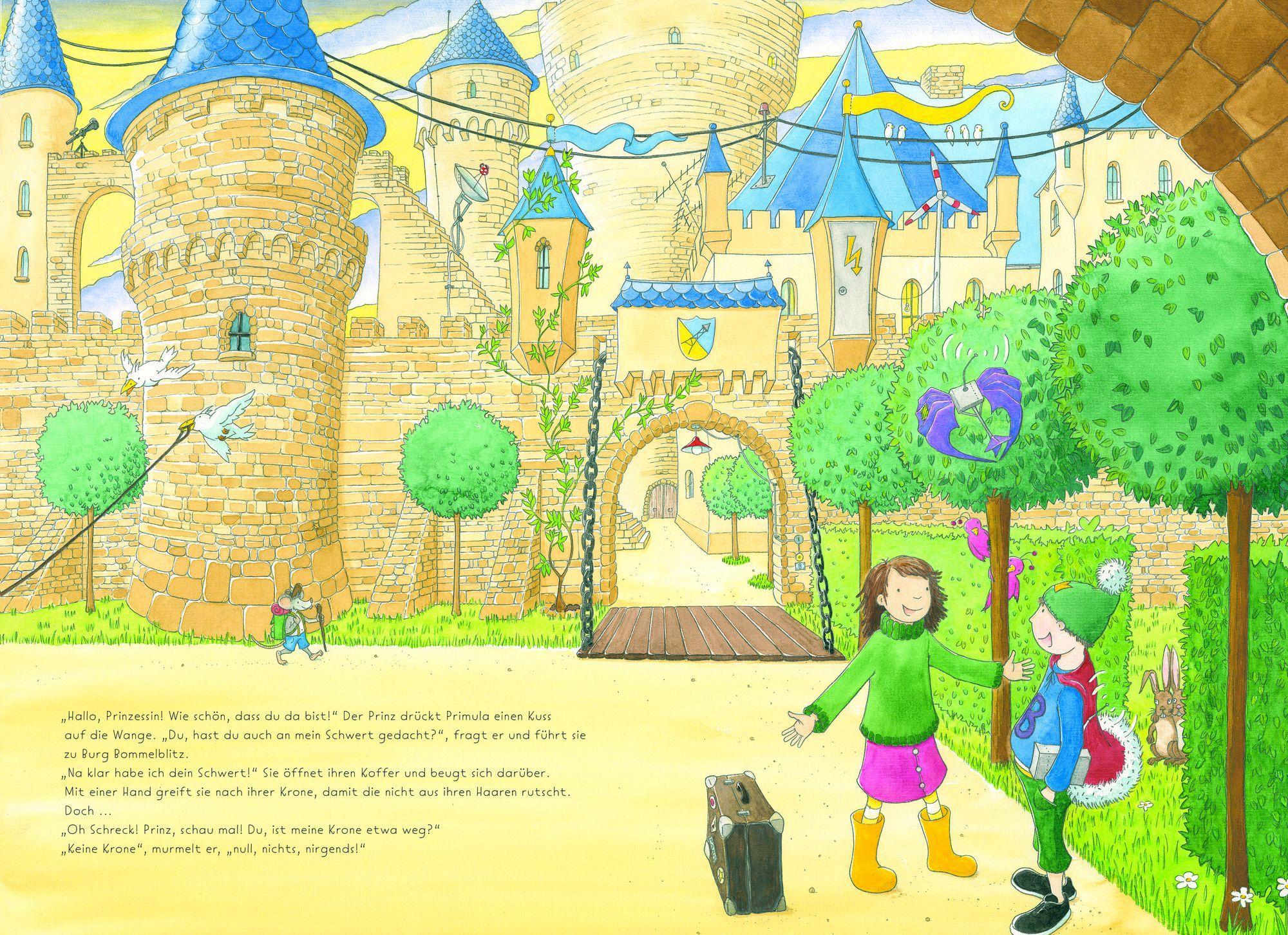 Liebe Prinzessin, ich bin's dein Prinz! Ein Brief von Balthasar, doch oje! Er hat bei seiner Freundin Prinzessin Primula sein Schwert vergessen. Und ein Prinz ohne Schwert - das geht gar nicht! Das ist schlimmer als nackig! Also macht Primula sich auf, um ihrem Freund das Schwert zu bringen. Doch für die Reise, die sie über Berg und Tal, durch Ozeane und Sümpfe führt, muss sie erst einmal packen, denn für solch eine Abenteuertour ist allerhand Equipment nötig. Wozu? Das wird man sehen und erleben! Auf der spannenden Reise gibt es überall viel zu entdecken, zu suchen und zu zählen.