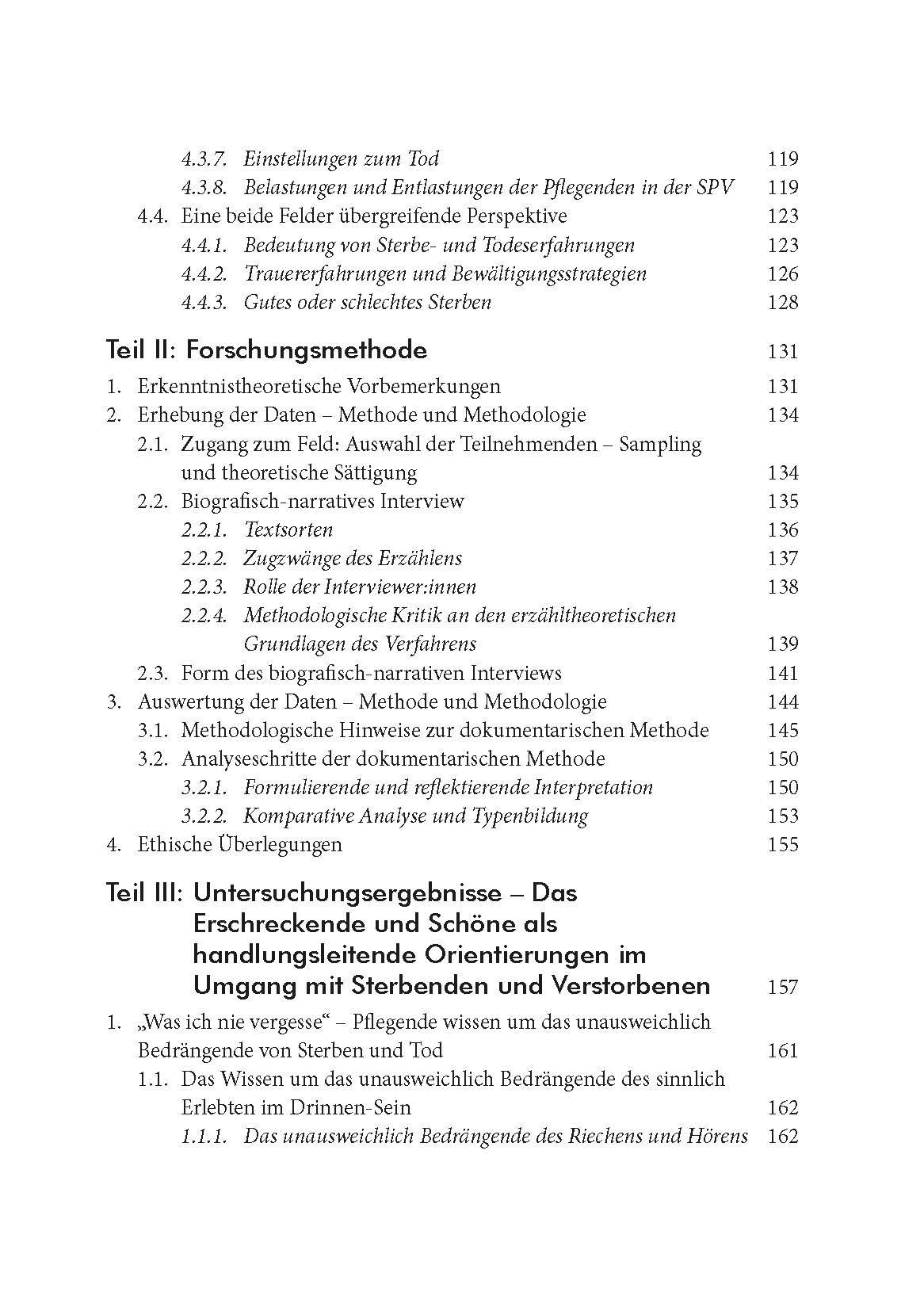 Manfred Baumann geht diesem auf den Grund, indem er narrative Interviews führt und auswertet. Pflegende aus dem Intensiv- und Palliativbereich berichten ihm von belastenden und bedrängenden Situationen, die sie nicht vergessen können und in "Gegenerzählungen" des guten Begleitens und schönen Abschieds einbetten. So werden implizite und explizite Strategien im Sprechen und Handeln sichtbar, die die Pflegenden zu einem guten beruflichen und privaten Umgang mit dem Thema befähigen.