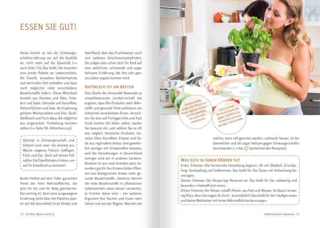Die richtige Ernährung spielt eine wesentliche Rolle im Leben der Schwangeren, der stillenden Mutter und des Babys. Ein vielseitiger und ausgewogener Speiseplan verbessert nicht nur Ihr eigenes Wohlbefinden, sondern schafft die Grundlagen bester Gesundheit auch für Ihr Baby. Alles, was Sie dazu wissen müssen, verraten Ihnen Ingrid Gerhard, Fachärztin für Frauenheilkunde und Geburtshilfe, und Barbara Rias-Bucher, Gesundheits- und Ernährungsexpertin: wie Sie im Einklang mit Ihrem Biorhythmus essen, die tägliche Zufuhr von Bioaktivstoffen aus heimischen, leicht erhältlichen Zutaten sichern und für Harmonie im Säure-Basen-Haushalt sorgen können.Gesunde Ernährung in Schwangerschaft und Stillzeit:Abwechslungsreiche Rezepte mit ausgewogenen und gut verträglichen Zutaten gewährleisten die optimale Versorgung mit Vitaminen und Mineralstoffen. Und bei Übelkeit, Verstopfung und anderen Beschwerden geben die beiden Autorinnen hilfreiche Tipps.Gesunde Babynahrung nach dem Abstillen:Hier finden Sie viele unkomplizierte Rezepte für Babys täglichen Brei. Oft können Mutter und Kind sogar gemeinsam genießen: Gemüsebrei pur fürs Baby und als feine Zutat in Mamas Hauptgericht - Ihnen bietet sich eine ganze Reihe von einfachen und schmackhaften Möglichkeiten.- Rund 100 unkomplizierte Rezepte mit farbigen Abbildungen- Praktische Tipps für eine vielseitige und vollwertige Ernährung- Gesunde Zwischen- und Hauptspeisen und altersgerechte Babykost