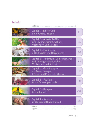 zeit auf natürliche Weise zu begegnen!- Die wichtigsten ätherischen Öle und Heilkräuter von A bis Z- Grundrezepte aus der Aromatherapie, Kräuter- und Pflanzenheilkunde- Rezepturen für Schwangerschaft, Geburt und Stillzeit - übersichtlich gegliedert nach Bedürfnissen/Beschwerden