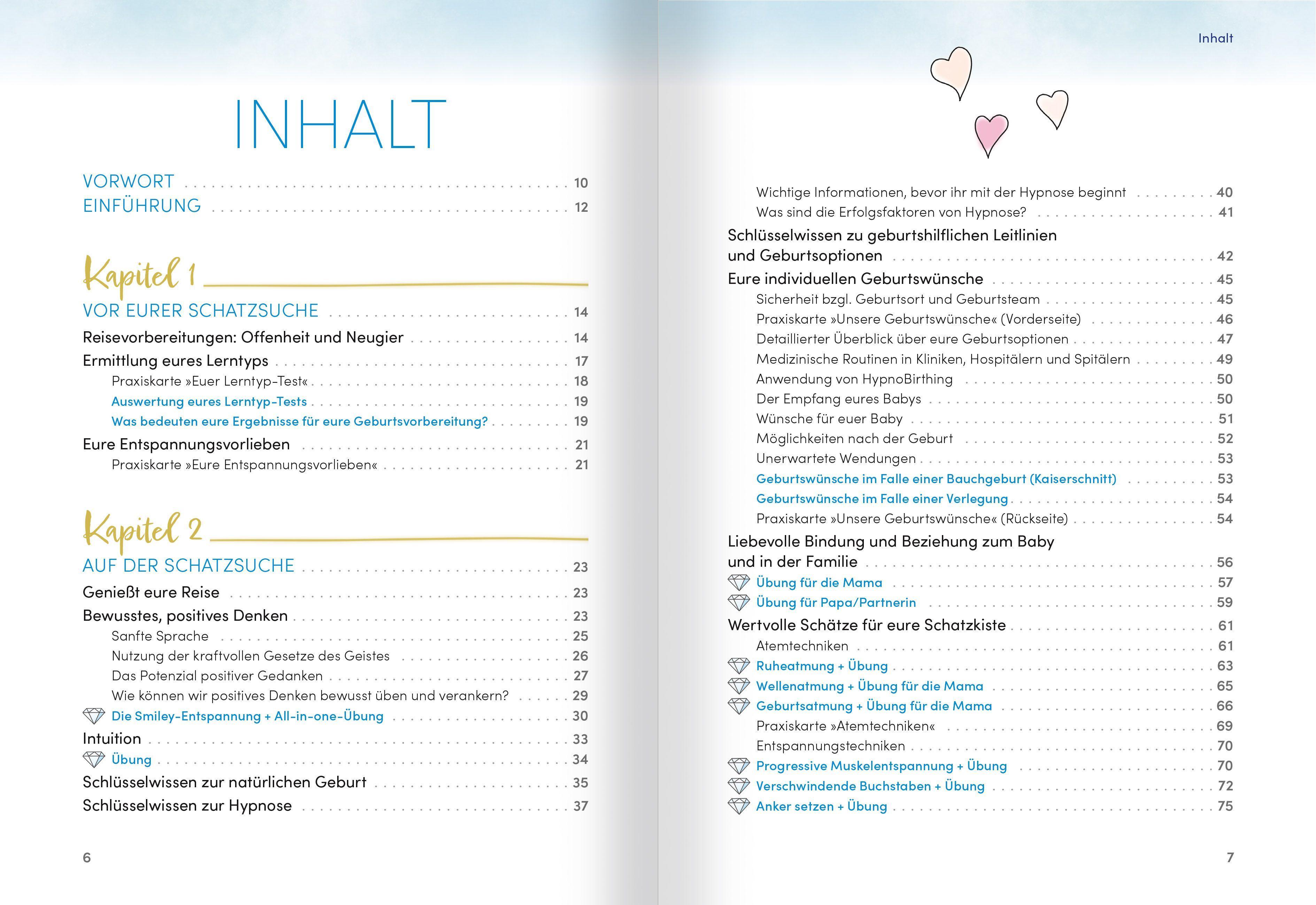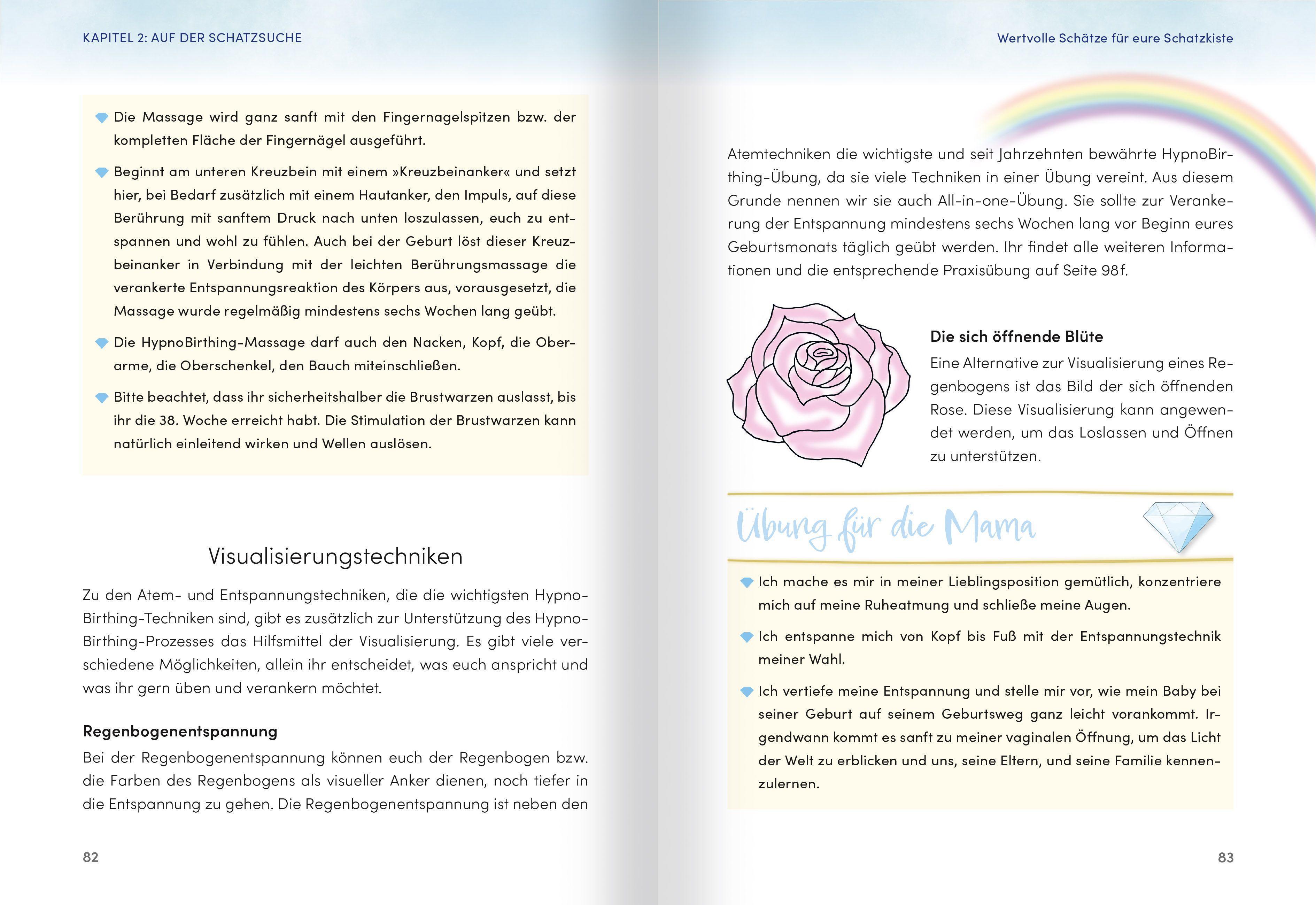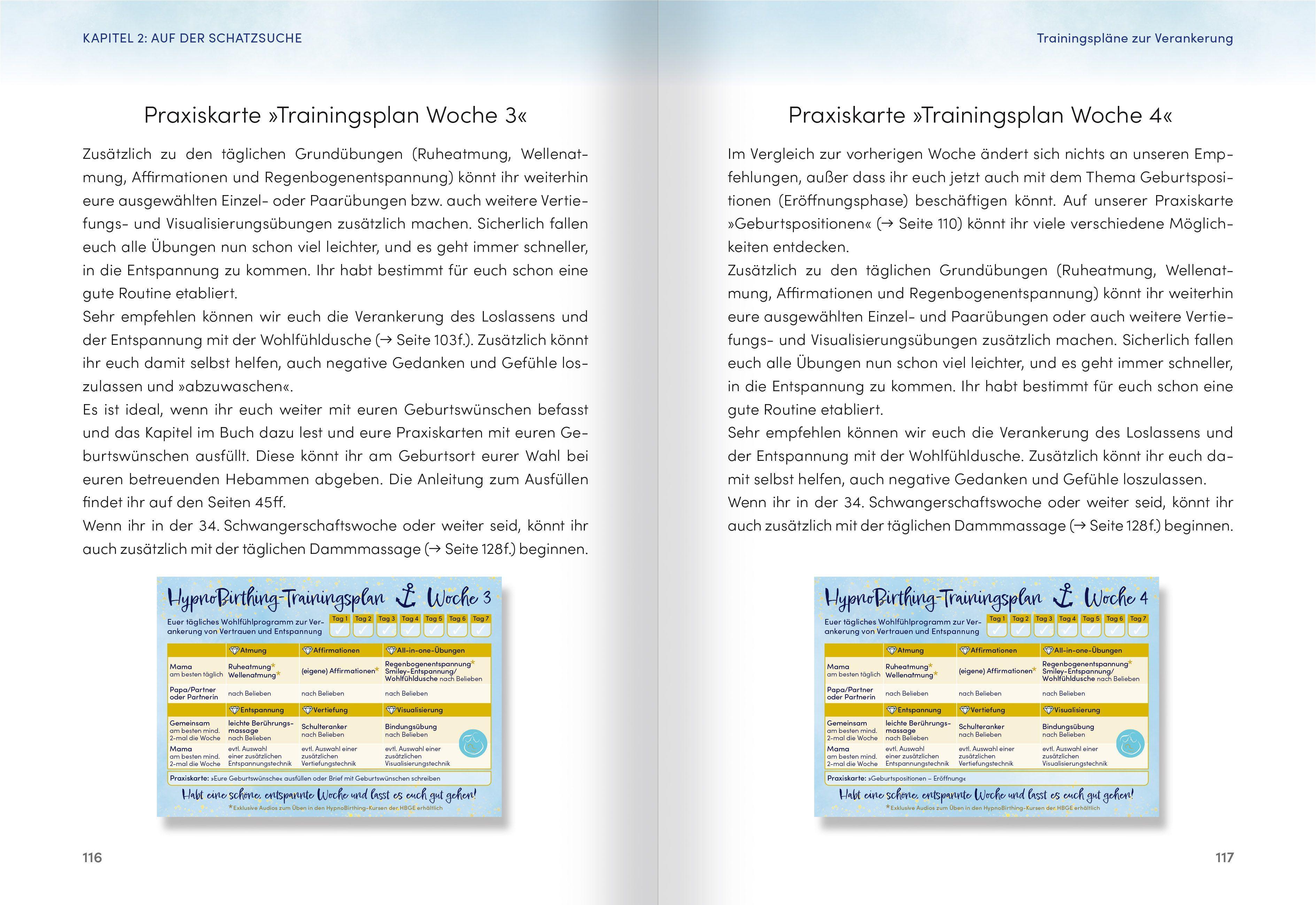 DER HILFREICHE BEGLEITER ZUR ORIGINAL HYPNOBIRTHING-METHODEDas Praxisbuch für werdende Eltern: Entdeckt das volle Potenzial des HypnoBirthing-Schatzes! Bewährte, leicht umsetzbare Übungen helfen euch, tiefe Entspannung in euch zu verankern, eure Intuition zu wecken, das Vertrauen in eure eigenen Fähigkeiten zu festigen, eure bewusste Selbstbestimmung zu aktivieren und mit viel Vorfreude die Eigenverantwortung für das Wohlergehen eures Kindes zu übernehmen. So lernt ihr, liebe Mamas, zum richtigen Zeitpunkt bewusst loszulassen, die Ausschüttung nützlicher Geburtshormone zu fördern und auf diese Weise den Ablauf einer natürlichen, sicheren und sanften Geburt zu unterstützen.Anhand der beiliegenden Praxiskarten könnt ihr als werdende Eltern HypnoBirthing optimal auf eure individuellen Bedürfnisse anpassen und zuverlässig einüben. Darüber hinaus werdet ihr eure liebevolle Bindung untereinander und zu eurem Baby intensivieren.- Großer Praxisteil mit Atem-, Selbsthypnose- und Entspannungsübungen- 10 handliche Praxiskarten mit Selbsttest, flexiblen Trainingsplänen und hilfreichen Übungen- Zahlreiche weiterführende Empfehlungen: Tipps für Ernährung und Bewegung, Beckenbodengesundheit, Dammmassage, Baby-Erstausstattung, Packlisten, Wochenbett-Vorbereitung, Babymassage, nützliche Kontaktadressen für frischgebackene Eltern und vieles mehrHypnoBirthing nach Marie F. Mongan - der natürliche Weg zu einer selbstbestimmten und entspannten Geburt!