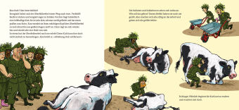 Statt ordentlich und diszipliniert zu marschieren, purzeln die Rekruten fast übereinander: Eine Kuh liegt im Weg, mitten auf dem Truppenübungsplatz. Und ganz egal, wie laut der Oberfeldwebel brüllt: diese Kuh bringt ein Kälbchen zur Welt und zwar genau hier und jetzt. Manche Dinge lassen sich einfach nicht aufhalten.