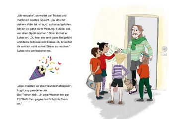 Auf dem Bolzplatz geht's richtig ab! Nur Lukas darf nicht mehr dabei sein, seit er beim FC Weiß-Blau aufgenommen wurde. Er soll sich ganz auf sein Training konzentrieren, meint sein Vater. Von Spaß am Kicken keine Spur mehr. Da lassen sich seine Bolzplatzfreunde Lexy und Tobi etwas einfallen ...