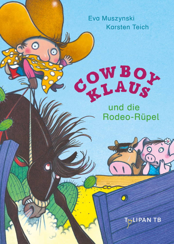 Cowboy Klaus im Wettkampffieber: Beim Mustang-Reiten und Hufeisen-Weitwurf kann er allen zeigen, dass er ein echter Cowboy ist. Doch die gefürchteten Rodeo-Helden Pickel Piet und Popel Paul wollen auch gewinnen. Mit üblen Schimpfwörtern versuchen sie, Cowboys abzulenken.