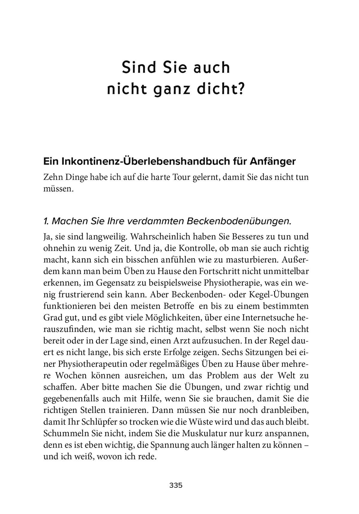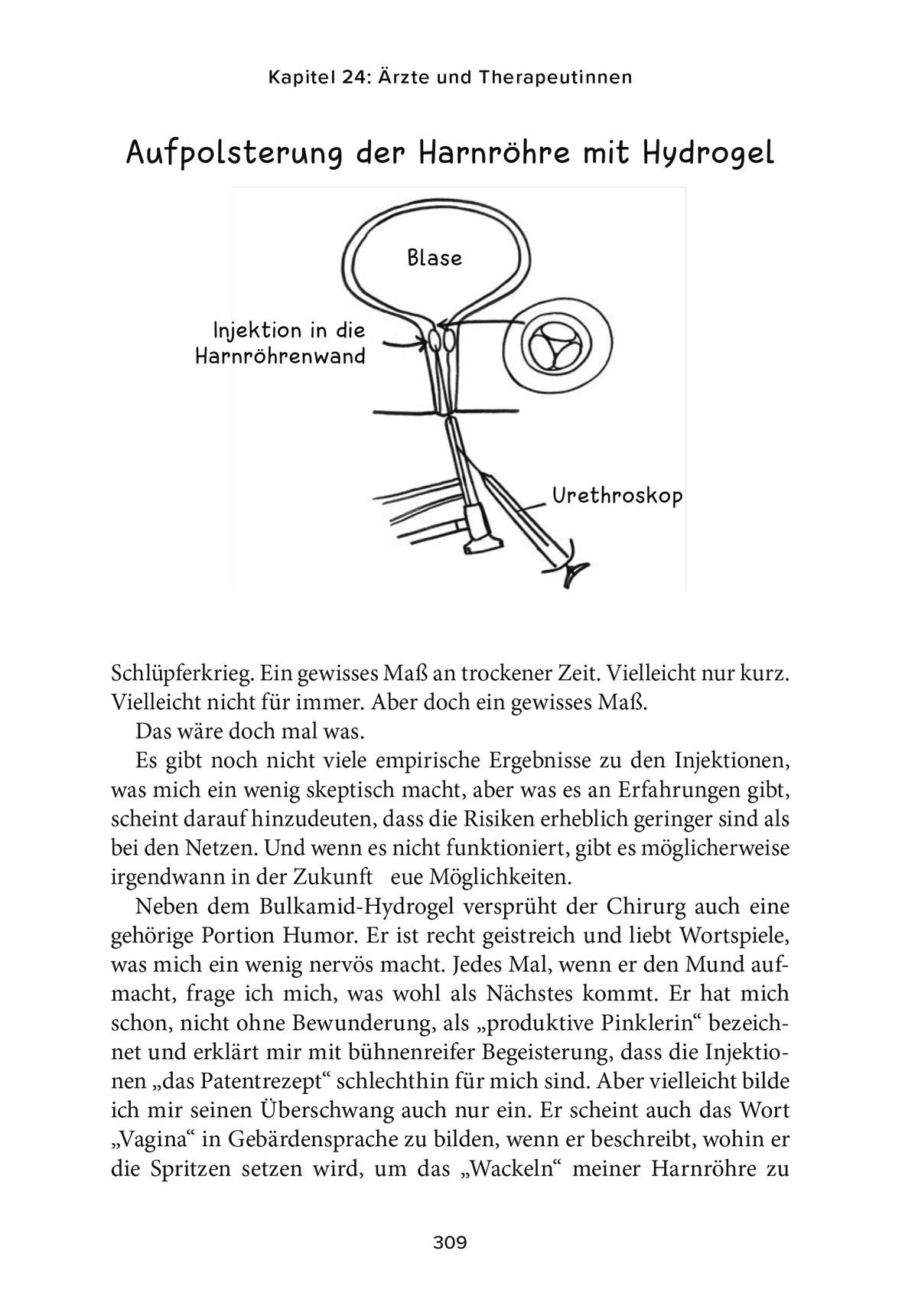 Mit einem lachenden und einem weinenden Auge bricht die Autorin eines der letzten Tabus und erzählt mutig und schonungslos ehrlich von ihrer Inkontinenz. Und sie macht anderen Betroffenen Hoffnung: Denn Blasenschwäche ist behandelbar!