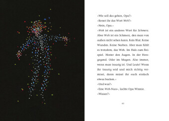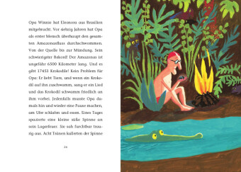 Opa Winnie ist unglaublich. In seinem Leben hat er 857 Rekorde aufgestellt. Zum Beispiel den des langsamsten Läufers der Welt. Gegen einen Gorilla hat er im Armdrücken gewonnen. Und die längste Lakritzschnecke der Welt (142 Meter und 17 Zentimeter) hat er gegessen. Steht alles in seinem persönlichen Buch der Rekorde.Heute plant Opa Winnie einen neuen Rekord: Mit Hilfe eines Tranks will er der leichteste Mensch der Welt werden, denn sein Arzt hat ihm mitgeteilt, dass er nur noch vier Wochen zu leben hat. Aber nicht mit Opa Winnie! Erdbegräbnis und Feuerbestattung ist gar nichts für ihn: Er will so leicht werden, dass er zur Venus fliegen und sich dort in Luft und Liebe auflösen kann. Diese Geschichte um einen besonderen Opa und seine beiden Enkel nähert sich den Themen Tod und Trauer, Abschiednehmen und Erinnern auf eine wunderbare, berührende und ganz neue Weise. Begleitet wird sie von Illustrationen der fabelhaften Kerstin Meyer.
