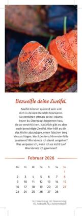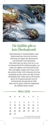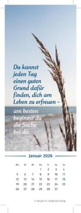 Der Lebensfreude-Lesezeichenkalender 2026. Aufbauende Denkanstöße, Sprüche und positive Gedanken, motivierende und leicht verständliche psychologische Impulstexte und Anregungen, gestaltet mit atmosphärischen Naturfotos. 12 Lesezeichen zum Raustrennen mit Monatskalendarium. Durchgehend vierfarbig/4c.
