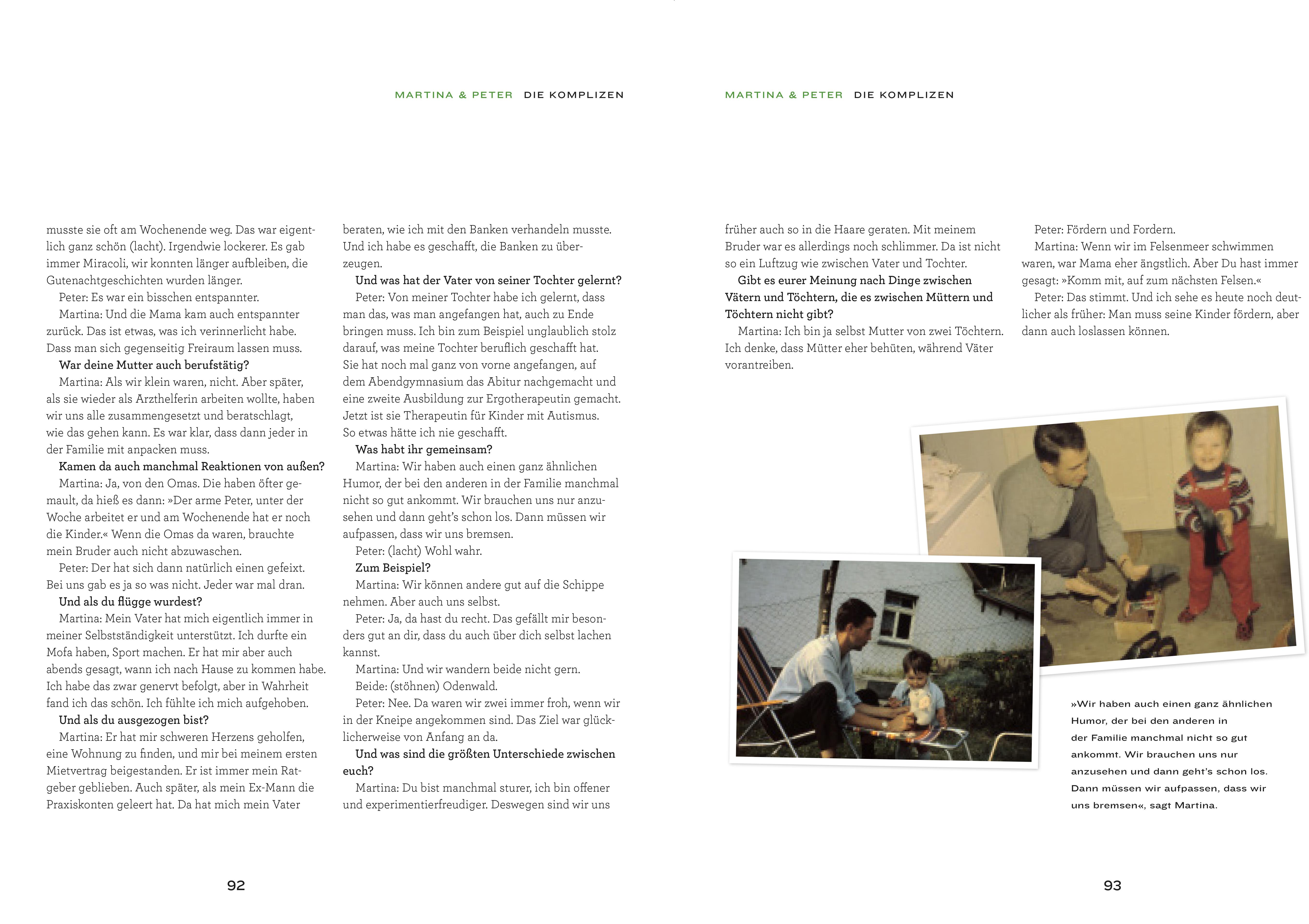 »Mit Leidenschaft, nicht mit Ehrgeiz, hat Papa immer gesagt.« Nanda, Nora und Selina YogeshwarDie vielfach ausgezeichnete Fotografin und Autorin Bettina Flitner hat 18 ganz unterschiedliche Väter & Töchter getroffen und sie danach gefragt, was ihre Beziehung so besonders, ihre Verbindung so stark macht. Entstanden sind sehr persönliche Porträts von und mit besonderen Persönlichkeiten. Wie Väter & Töchter aneinander wachsen können, wie wichtig Freiheit und Selbstbewusstsein sind, davon erzählt dieses Buch.U. a. mit: Rennfahrerin Ellen Lohr und Vater Alfred, Wissenschaftsjournalist Ranga Yogeshwar und seine drei Töchter, Schornsteinfegerin Panner-Thorack und Vater Karl Josef Panner, Journalistin Düzen Tekkal und Vater, Schriftsteller Martin Walser mit seiner Tochter Franziska, Landwirtin Pia Schaper und Vater Werner, Schmiedin Danielle und Vater Peter Andraschko, Schauspieler August Zirner und Tochter Ana, Astronautin Insa Thiele-Eich und Vater Gerhard