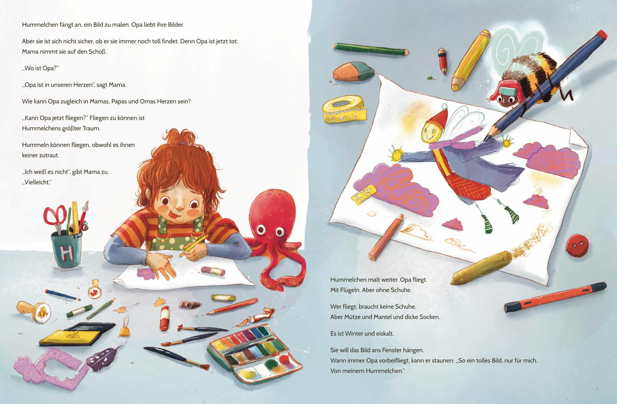 Während ihr "Wusel"-Bauchweh kommt und geht, entsteht durch ihre Liebe ein besonderer Ort, an dem nicht nur die Erinnerung, sondern auch die Natur gedeiht. "Im Leben nicht!" hätte Opa ein lebloses Grab gewollt - stattdessen schenkt Hummelchen ihm und der Welt ein kleines Biotop voller Farben und Platz für Tiere.
