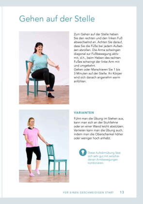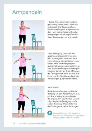 Gymnastik für Senioren - einfach und effektiv!Bringen Sie mit Gymnastik Schwung in Ihren Alltag. Ob als kleine Bewegungseinlage zwischendurch oder als längere Trainingseinheit - mit den Übungen in diesem Buch ist alles möglich. Bauen Sie auch im Alter Kraft und Ausdauer auf und verbessern Sie Ihre Koordination und Beweglichkeit. Trainiert werden Schultern und Arme, Körpermitte und Hüfte, Beine und vieles mehr.Die Gymnastik-Übungen im Sitzen und im Stehen können sowohl von Einsteigern als auch Wiedereinsteigern leicht und sicher ausgeführt werden. Verschiedene Varianten, z.B. mit leichten Gewichten, zeigen, wie die Schwierigkeit gesteigert werden kann.Dem Ziel, im Alter aktiv, fit und schmerzfrei zu bleiben, sind Sie mit diesem Buch ein gutes Stück näher.