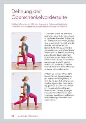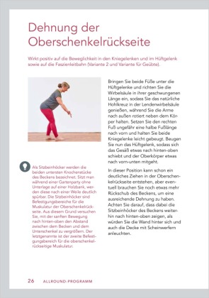 Schluss mit Verspannungen, Schmerzen und Co. Stretching ist das ideale Training, damit Sie sich rundum wohlfühlen!Strecken und recken Sie sich, dehnen Sie sich vom Kopf bis zu den Zehenspitzen - mit den Übungen aus diesem Buch bleiben Sie beweglich und gehen aufrecht und entspannt durch den Tag.Ganz egal, ob Senior, Einsteiger oder fortgeschritten, ob Vielsitzer oder sportlich aktiv, diese Stretching-Übungen sind eine Wohltat für Ihren Körper: Mit zahlreichen Bildern zeigt dieser praktische Ratgeber einfach und verständlich die wichtigsten Mobilisations- und Dehnübungen für alle Körperbereiche. Allround-Programme im Stehen und im Sitzen sowie Tipps zum Auf- und Abwärmen ergänzen die Einzelübungen.Legen Sie los, stärken Sie Ihren Körper, halten Sie sich bis ins hohe Alter mit Stretching fit und vital!