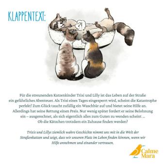 Trixis und Lillys ziemlich wahre Geschichte nimmt uns mit in die Welt der Straßenkatzen und zeigt, dass wir unseren Platz im Leben finden können, wenn wir Hilfe annehmen und einander vertrauen.