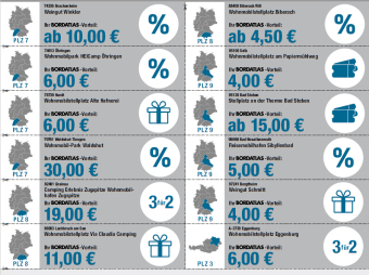 pas, topaktuell überarbeitet- Große Landkarten dank großem Buchformat, für eine gute Reiseplanung- Komplette Stellplatz-Infos mit touristischer Lage, max. Fahrzeug-Länge, Preis, Foto, GPS-Daten, Kontaktdaten, detaillierter Stellplatzausstattung, Gespann-Erlaubnis und Infrastruktur- Service-EXTRA: Notfallnummern und Verkehrsregeln samt Maut in Europa speziell für Wohnmobilfahrer- Nützlich: Übersicht von Entsorgungsstationen in Deutschland- Stellplatz-Rabatte und -Gutscheine im Gesamtwert von 600 EuroOb als Hidden Place naturnah gelegen oder zentral in Städten, mit viel Komfort oder schlicht für die Durchreise, ob für Wellness an Thermen oder sportlich in den Bergen: Die BORDATLAS Redaktion hat über 7.200 Stellplätze in Deutschland und Europa zusammengesucht - Plätze so vielfältig wie auch die Womo-Urlauber selbst. So findet jeder seinen Lieblingsplatz.Kundenvorteile- Stellplatz-Gutscheincoupons im Gesamtwert von 600 Euro helfen auf Reisen zu sparen. So hat sich der Buchpreis schnel