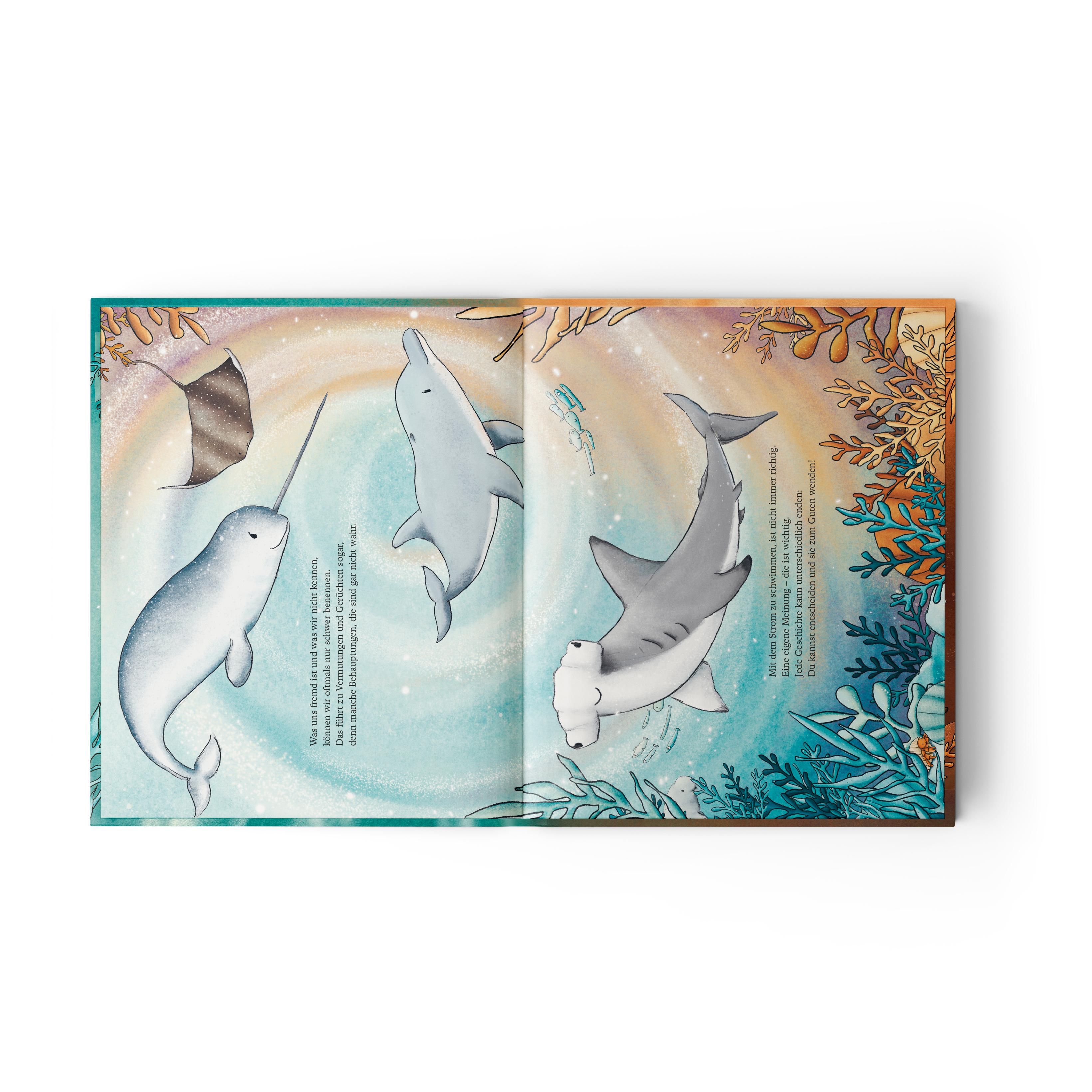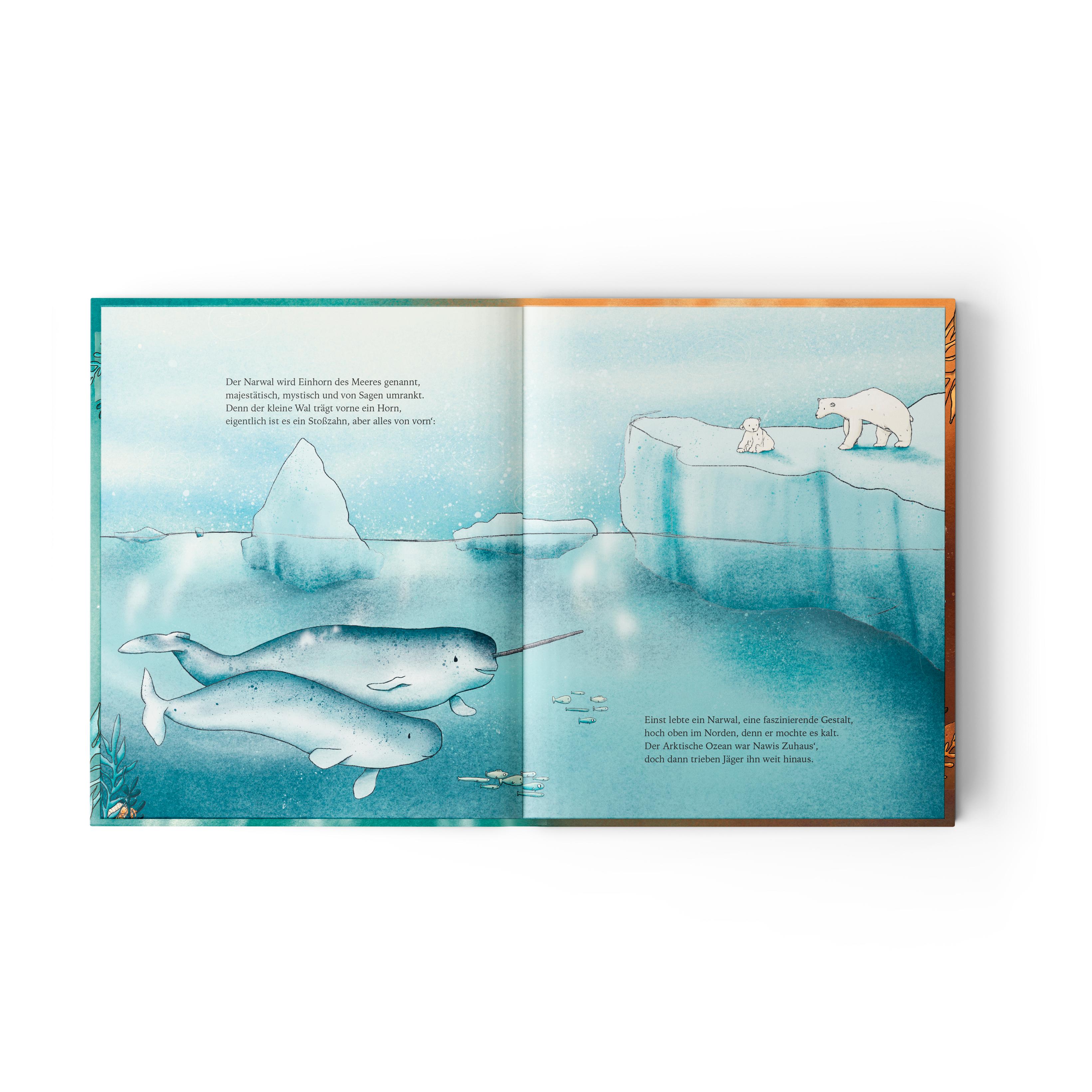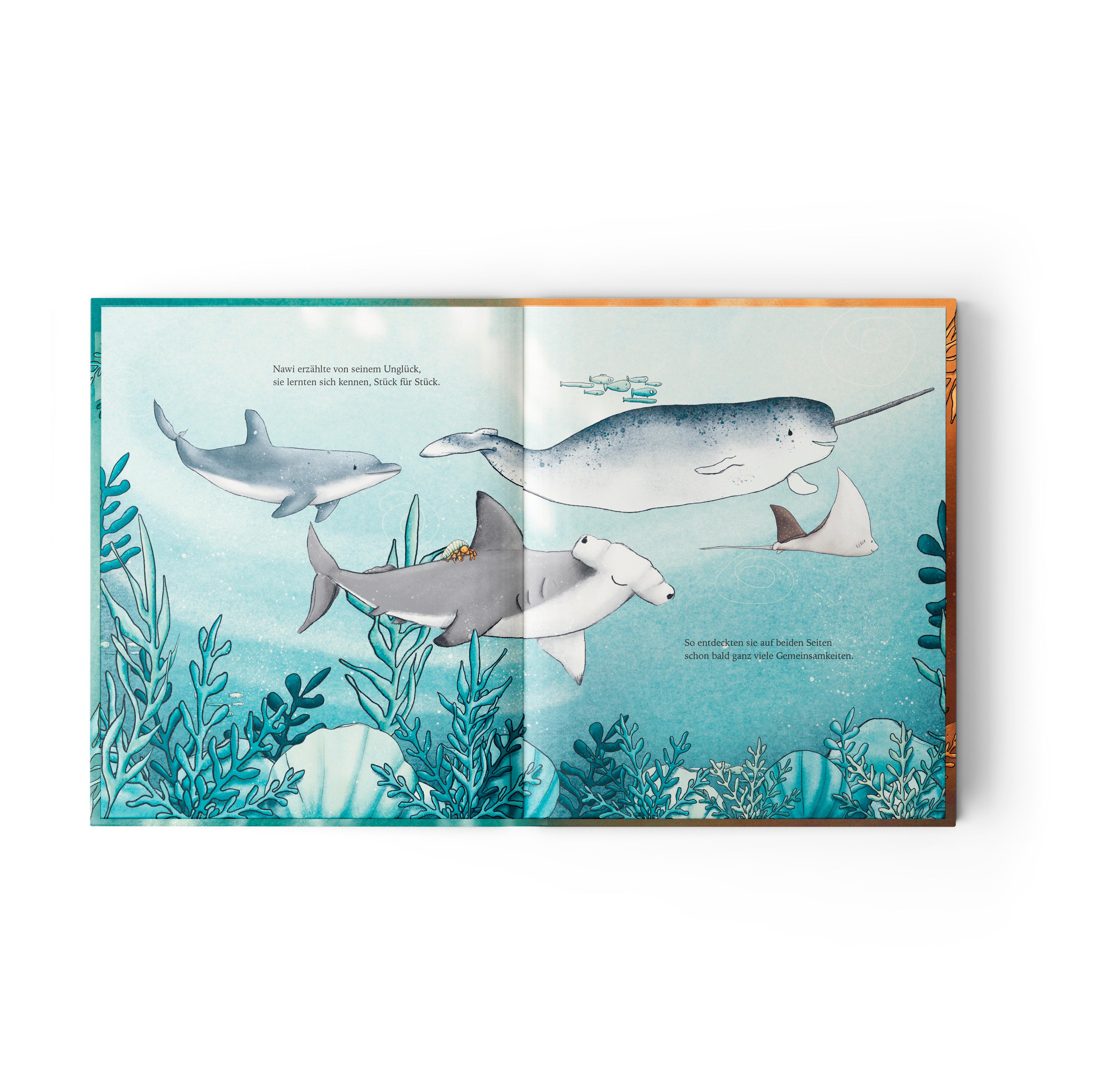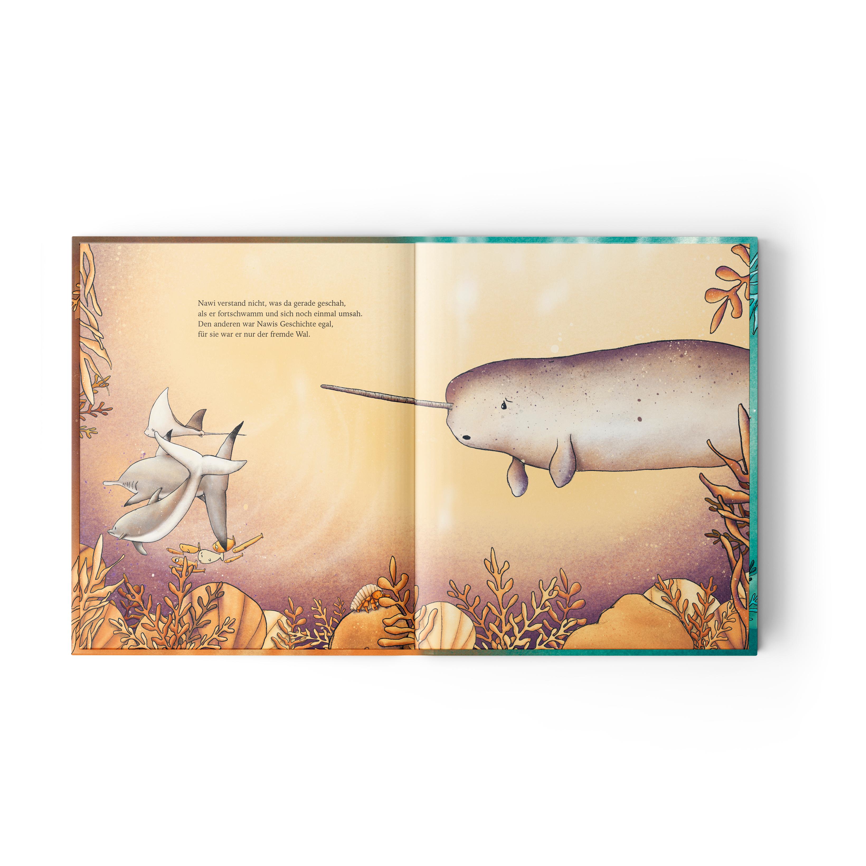 Nawi, der kleine Narwal, verliert sein Zuhause und begibt sich auf die Reise durch unbekannte Gewässer. Dabei trifft er auf Meerestiere, die seine Andersartigkeit aus verschiedenen Perspektiven betrachten. Wird es Nawi gelingen, Freunde zu finden und Vorurteile zu überwinden? Dieses einzigartige Wendebuch erzählt zwei Geschichten: Die eine zeigt, wie Offenheit und Freundschaft aus Fremden Vertraute machen können. Die andere warnt vor der Macht von Vorurteilen und der Einsamkeit, die sie erzeugen. Beide Geschichten laden dazu ein, den Wert von Akzeptanz und das Überwinden von Vorurteilen zu entdecken - und am Ende selbst darüber nachzudenken, wie wir unsere Welt ein Stück besser machen können.
