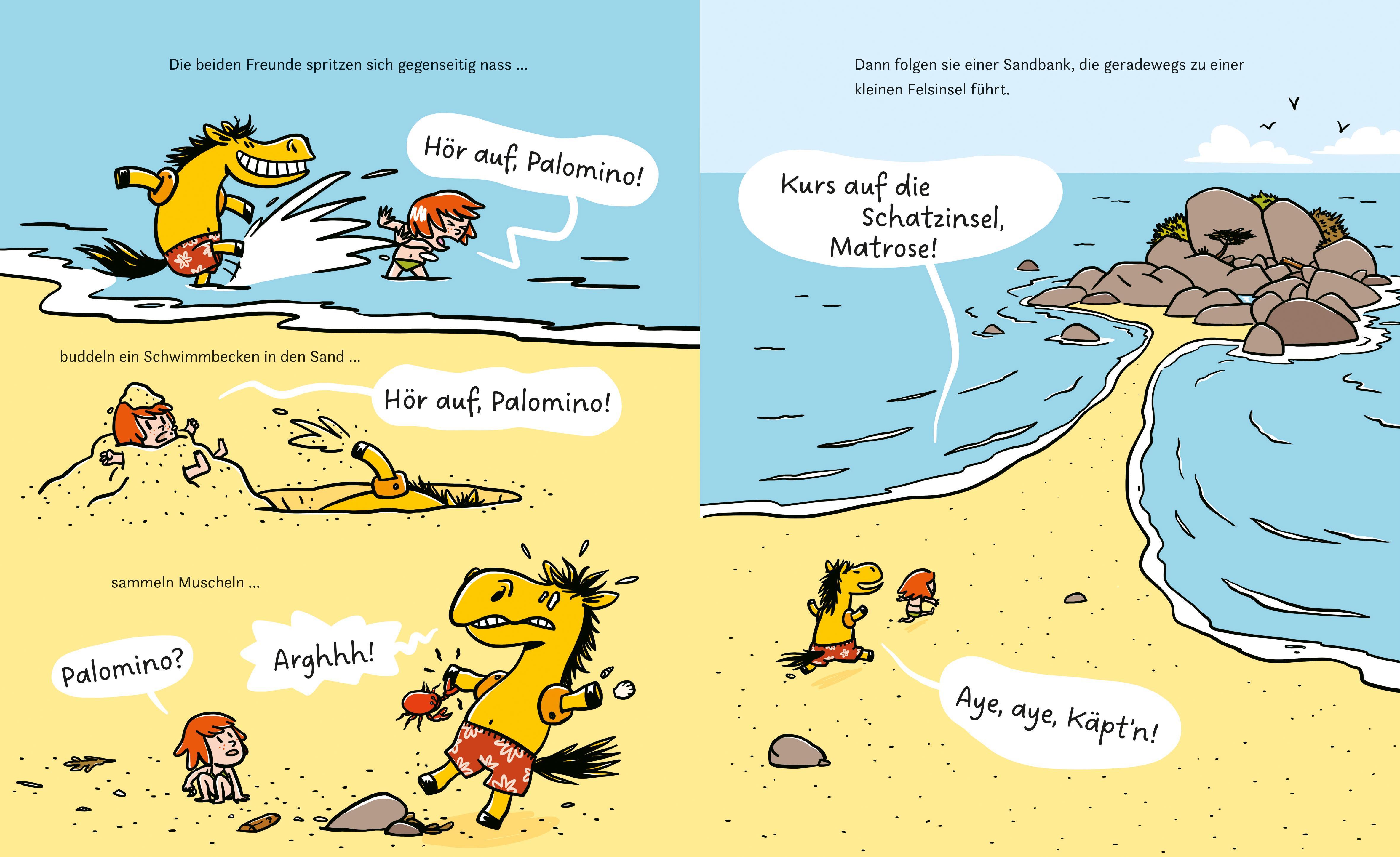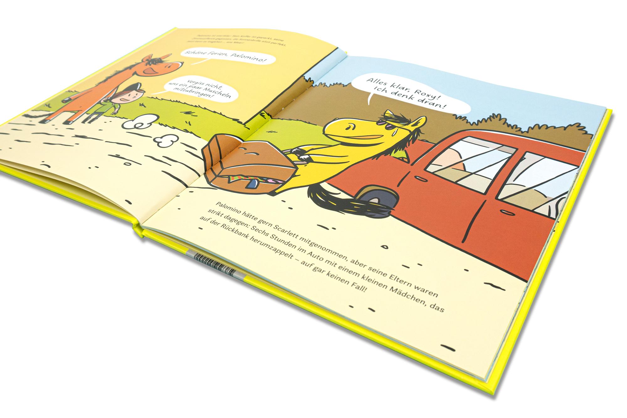 Palomino packt die Koffer, denn es geht in die Ferien! Das heißt Sonne, Sommer und Spaß für das freche Pony und seine beste Freundin Scarlett - die von den beiden heimlich in Palominos Gepäck geschmuggelt wurde. Im Urlaub warten spannende Abenteuer und neue Freunde auf das lustige Pferde-Mädchen-Duo.