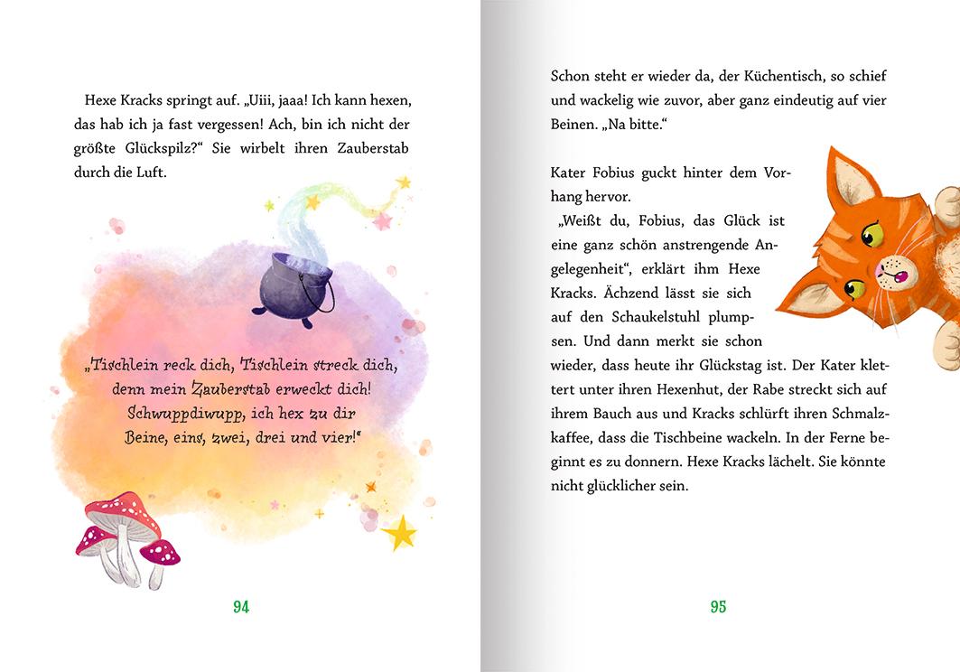 Sieben lustige und warmherzige 3-, 5- und 7-Minuten-Geschichten zum Vorlesen mit jeder Menge Zaubersprüchen und vielen bunten BildernHexe Kracks ist stinkefaul, sie liebt Kuhfladenkuchenund schläft nachts auf einem Pupskopfkissen- mit Geruch. Eklig? Ein bisschen. Aber dafür kann sie prima hexen - und sie hat ein riesengroßes Herz! Das wissen auch ihr kluger Rabe Furunkel und Angsthasenkater Fobius. Der versteckt sich am liebsten unter Kracks großem Hexenhut, denn mit ihr kann es ganz schön chaotischwerden. Egal ob sie im Supermarkt den Einkaufswagen verzaubert, in der Hexenschule den Hexentrank vergeigt oder auf dem Jahrmarkt Riesenrad fährt - mit Hexe Kracks ist immer was los und mit ihren witzigen Zaubersprüchen ist sie jeder Situation gewachsen!Extra im Anhang: "Zaubern lernen mit Hexe Kracks - praktische Zaubersprüche für den Alltag"