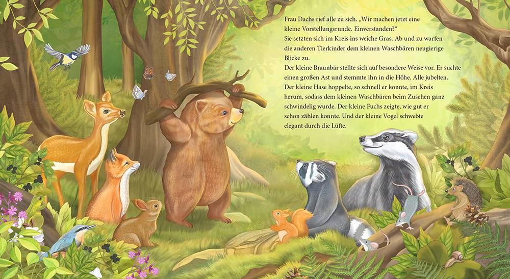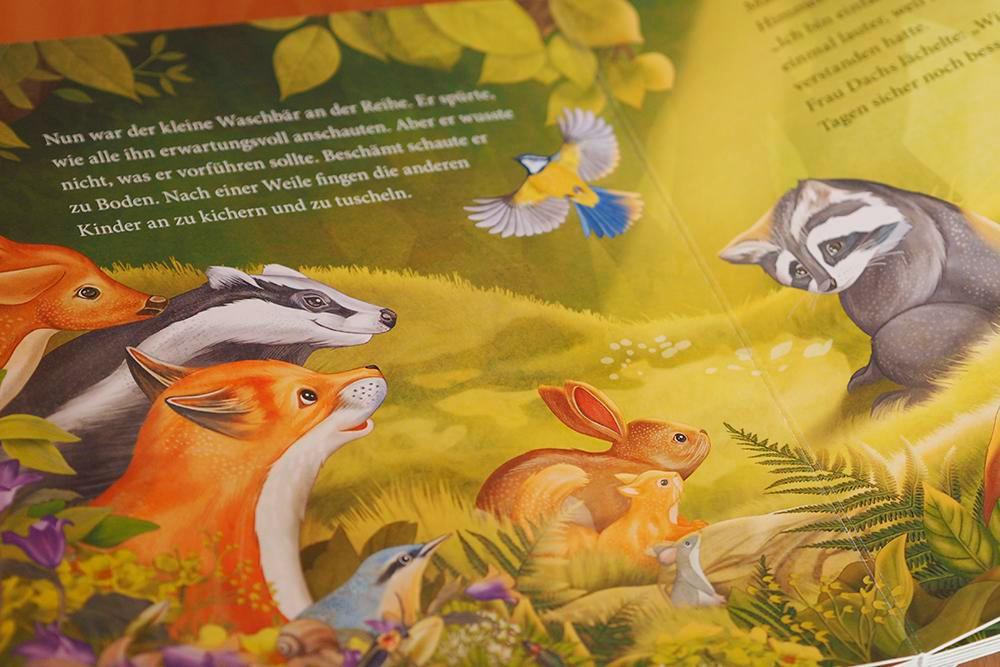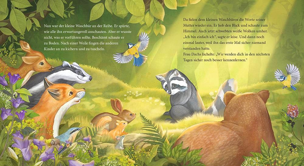 Ein Mutmach-Bilderbuch von Lea Käßmann mit liebevoller Zusage für die Kleinsten: »Du bist gut, so wie du bist.« Mit außergewöhnlich schönen, farbenfrohen Illustrationen von Jana Walczyk. Für Kinder ab 2 Jahren. Der kleine Waschbär ist ängstlich und unsicher: Alle anderen Kinder im Waldkindergarten konnten am ersten Tag etwas ganz Tolles zeigen: Der Hase hoppelte so schnell, dass einem nur beim Zusehen schwindelig wurde. Und der kleine Bär hat einen ganzen Baumstamm hochgehoben. Nur dem kleinen Waschbär fiel nichts ein, was er besonders gut kann.Zum Glück trifft er auf dem Nachhauseweg den kleinen Fuchs. Zusammen balancieren sie über hohe Äste und glitschige Steine. Als der kleine Fuchs am nächsten Tag davon berichtet, schauen alle den kleinen Waschbären voller Bewunderung an. Und der merkt: »Wahrscheinlich kann jeder irgendwas besonders gut. Man muss nur ein bisschen mutig sein, um es herauszufinden.«