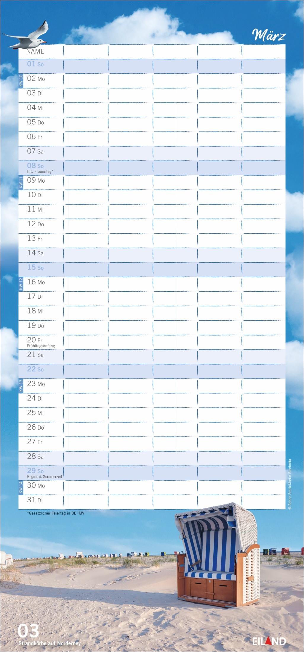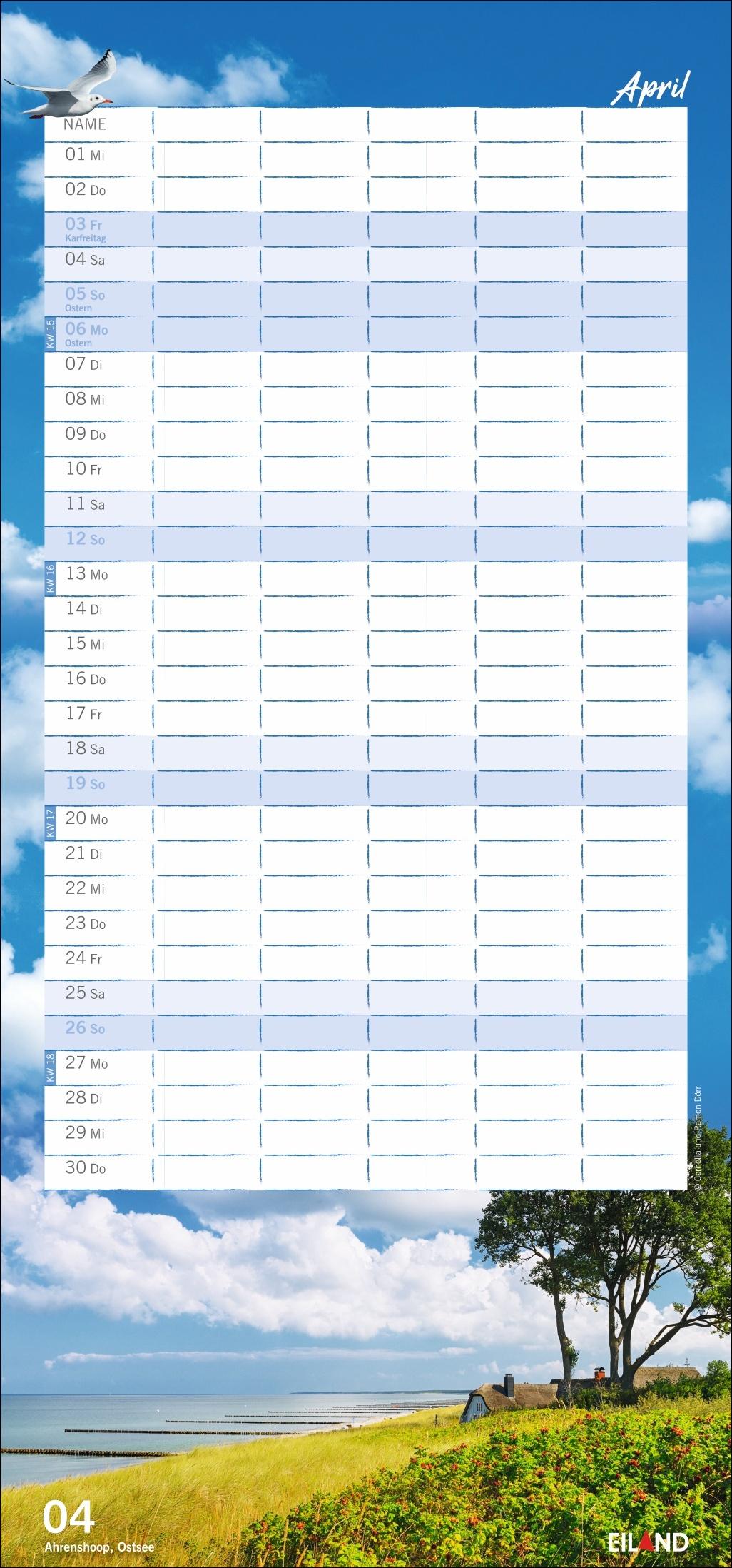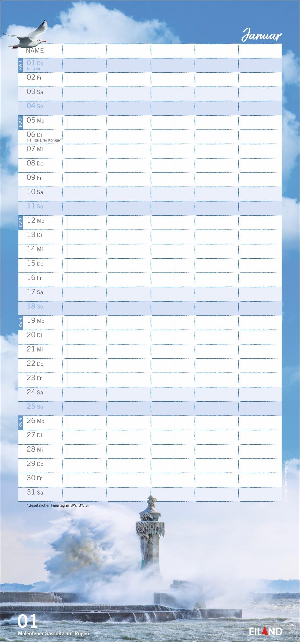 - Die ganze Schönheit der deutschen Küste entdecken: der große Familienkalender 2026 mit atemberaubenden Meeres-Motiven- Immer alles im Blick mit unserem alltagstauglichen Familienplaner: 5 Spalten Platz für alle wichtigen Termine von A wie Arztbesuch bis Z wie Zirkusvorstellung- Monat für Monat Wattenmeer, verträumte Küstenorte und faszinierende Naturfotografie: mit 12 hochwertigen Bildern in brillanten Farben- Bringt "Meer" Flair in jede Küche: Der praktische Kalender für Familien im 21 x 45 cm Hochformat, mit Schulferienübersicht- Besser planen für Küstenromantiker: die Wandkalender von Eiland im Athesia Kalenderverlag