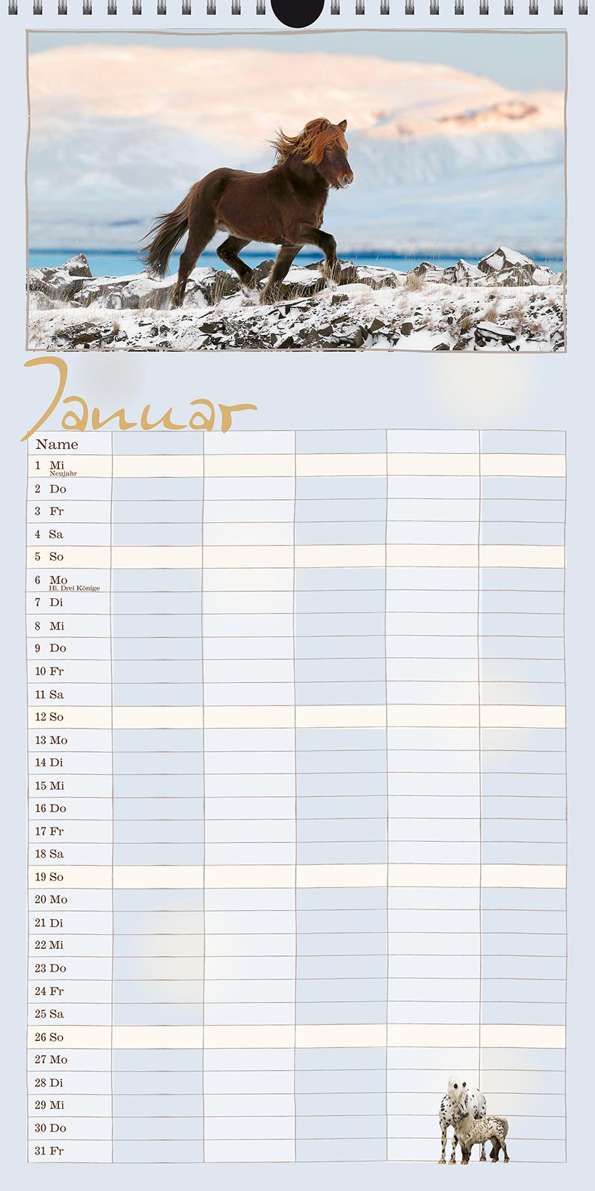 ¿Er ist auch zum Träumen gemacht, zum Planen von vielen Dingen, Terminen und Aktivitäten - nicht nur rund um das Pferd. Jedes Motiv in diesem Familienplaner zeigt die besondere Ausstrahlung dieser herrlichen Wesen und man plant in Gedanken schon den nächsten Ausritt.